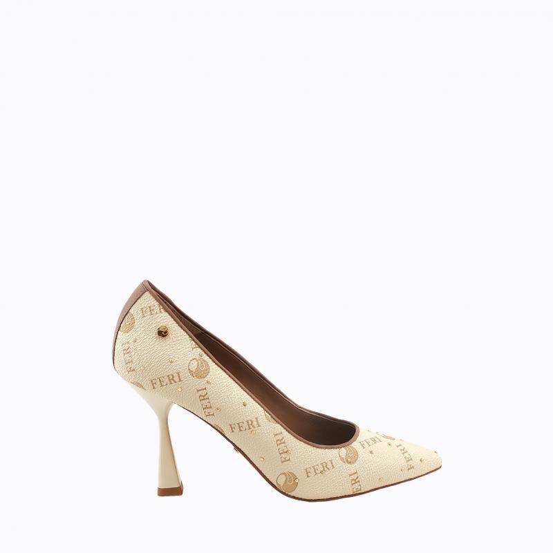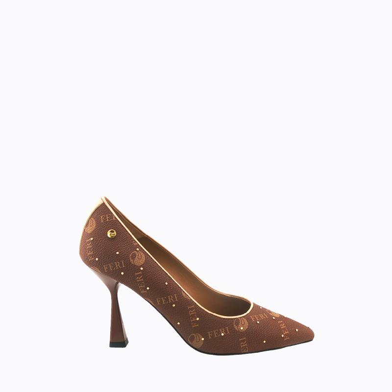 FERI- Ladies Monogram Collection Heels - Made in Portugal - Made with signature monogram canvas - Embellished with genuine vegetable leather - Decorative hand studs in gold plated details - Custom FERI hardware - Genuine leather interior - Custom leather s...