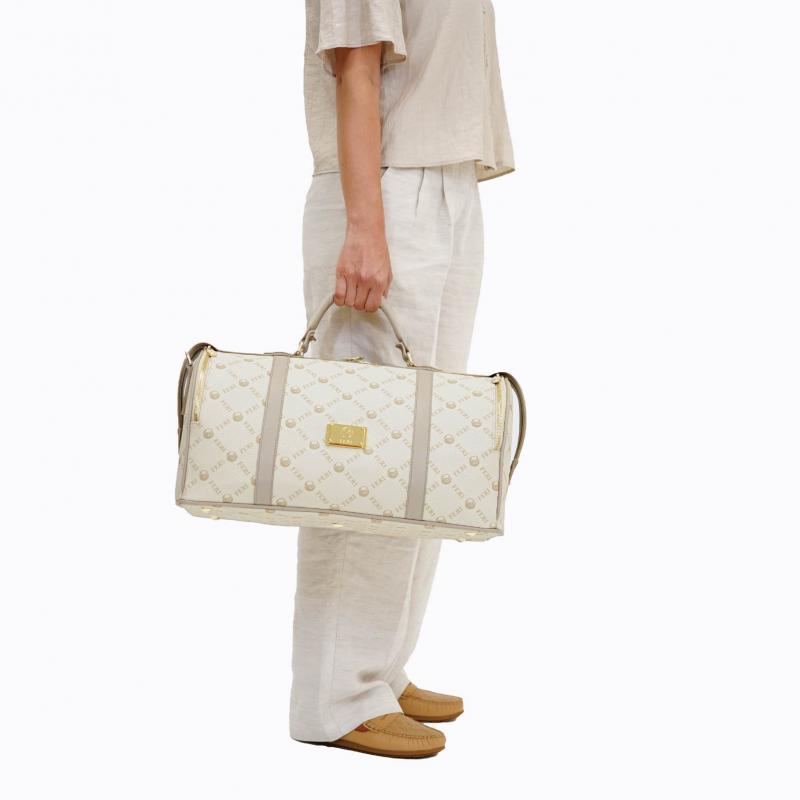 FERITravel in style with the FERI Signature Monogram Duffle Bag, a perfect blend of elegance and function. Crafted from premium textured genuine vegetable leather, this sophisticated duffle features an all-over monogram print with the iconic FERI logo arranged in ...
