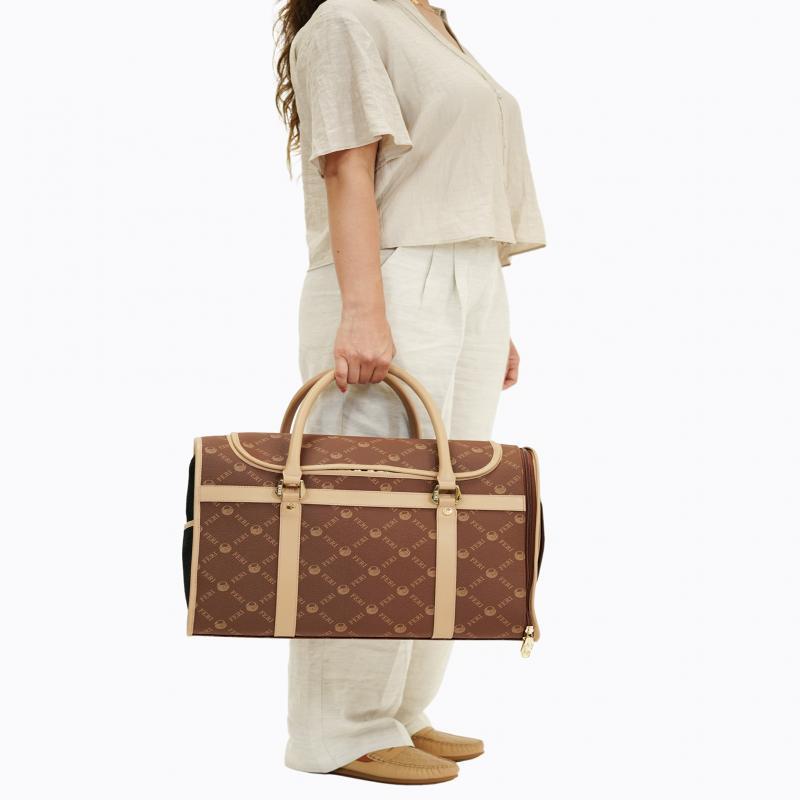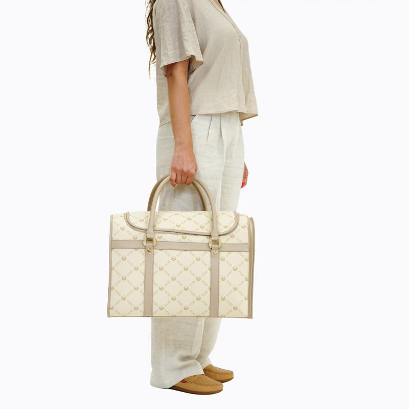 FERIGive your furry friend a first-class travel experience with the FERI Luxury Monogram Pet Carrier. Designed with both fashion and function in mind, this premium pet bag is perfect for stylish pet owners on the go. The body is crafted from soft beige leather ado...
