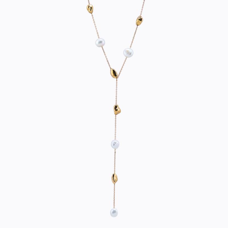 - Fresh water pearls paired with 18K gold-plated nugget accents for a chic, modern necklace - Delicate chain that adds a touch of sophistication - Secure clasp for durability and comfortable wear - Designed for both casual and formal occasions - Durable m...