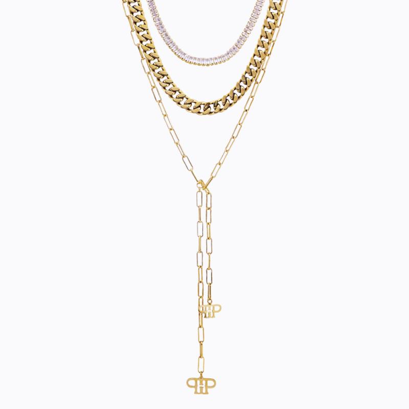 - Limited edition multi-layer necklace featuring a fusion of Cuban, paperclip, and pavé-inspired chains - Crafted in premium stainless steel with luxurious 18K gold plating for fine-jewelry shine - Pavé-style stones deliver brilliant sparkle without the we...