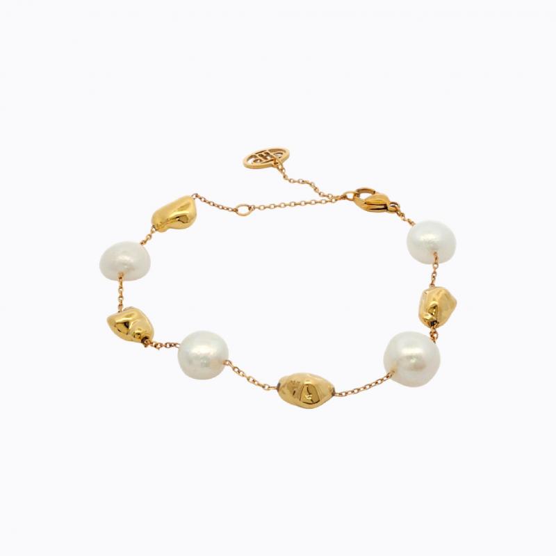 - Fresh water pearls paired with 18K gold–plated nugget accents for a chic, modern bracelet - Delicate chain that adds a touch of sophistication - Secure clasp for durability and comfortable wear - Designed for both casual and formal occasions - Durable ...