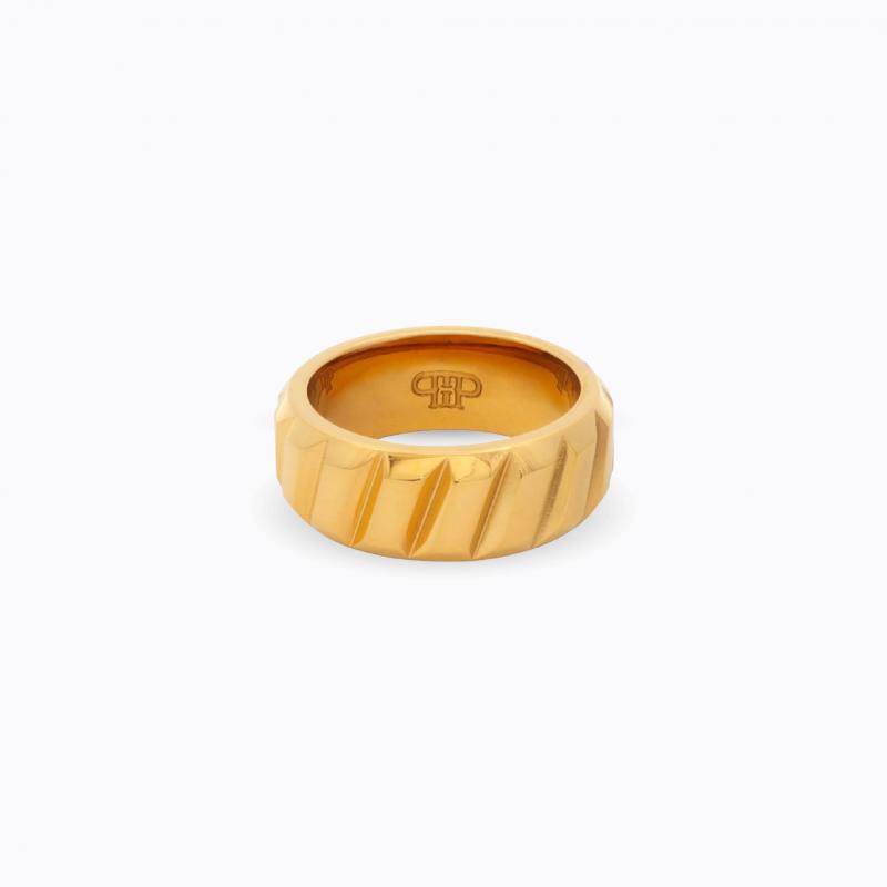 - Stylish stainless steel ring featuring luxurious 18K gold plating and a bold design for a striking accessory - Unique textured pattern that adds depth and modern flair - Polished finish for an eye- catching shine - Durable construction ensures long-lastin...