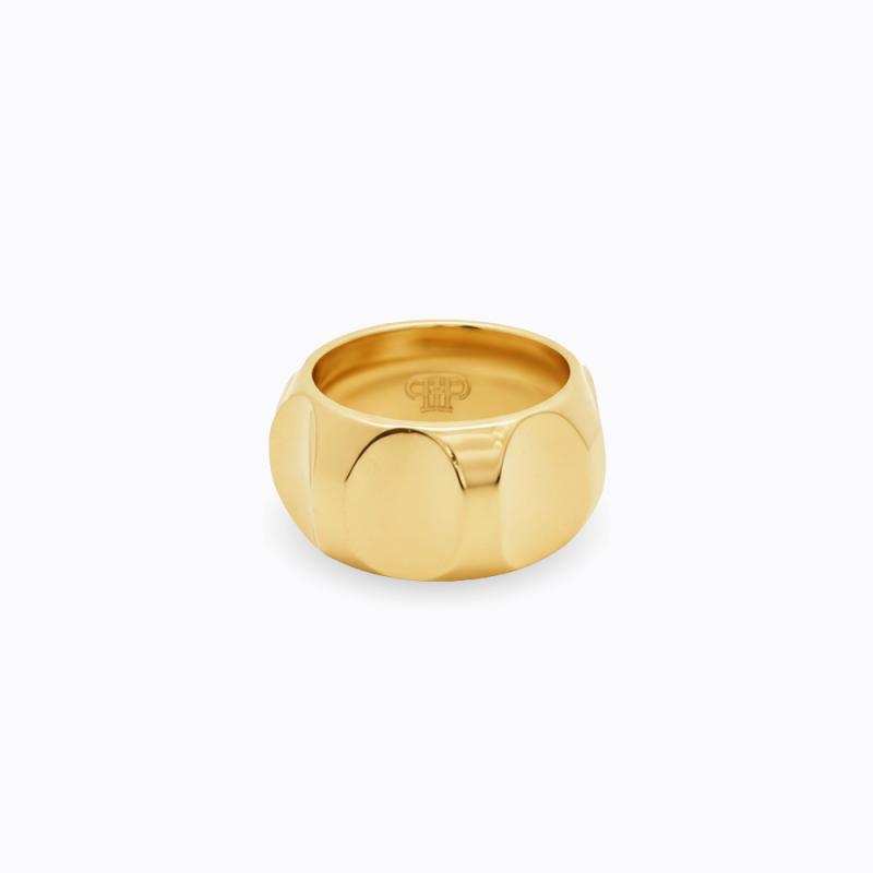 - Elegant stainless steel ring featuring luxurious 18K gold plating and a bold design for a stunning accessory - Smooth surface with subtle horizontal grooves for a chic touch - Polished finish that enhances its luxurious look - Durable construction ensures...