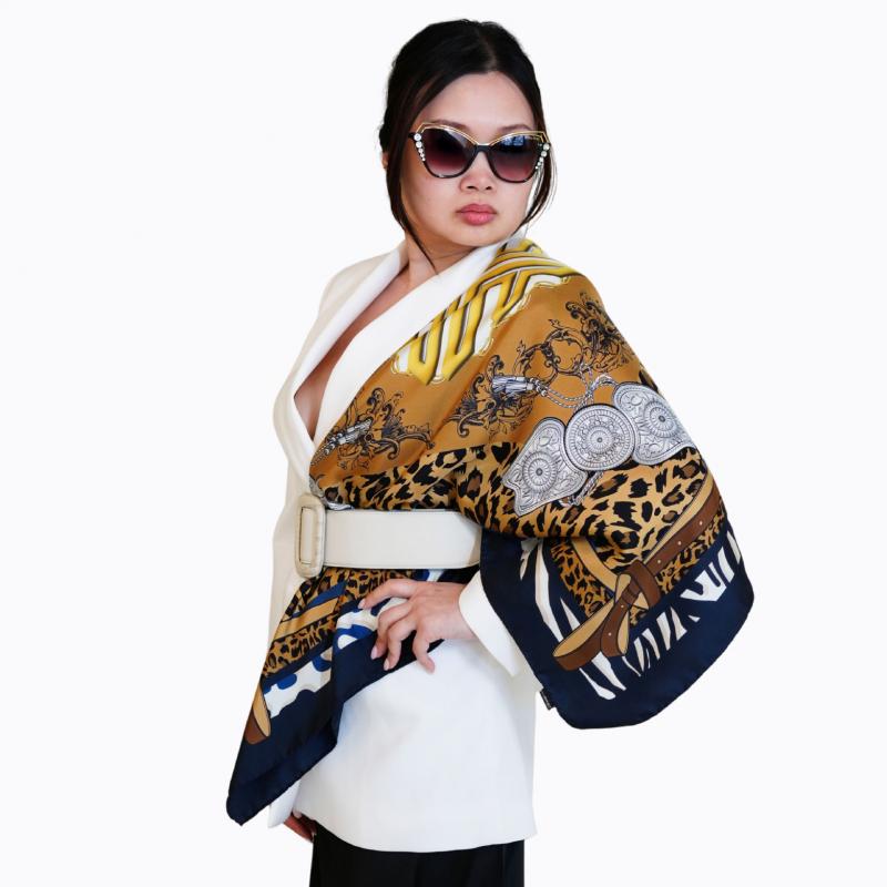 FERI- Opulent bohemian-inspired design with bold leopard prints and intricate metallic detailing - Made in Italy from 100% premium silk twill - Hand-rolled edges for an exquisite finish - Versatile styling - Draped around the neck as a classic scarf or shawl ...