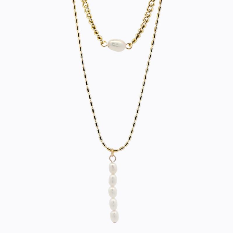 - Elegant stainless steel necklace featuring luxurious 18K gold plating and delicate freshwater pearl for a sophisticated accessory - Stylish layered design that adds depth and dimension - Beautiful pearl accent for a touch of classic elegance - Secure clas...