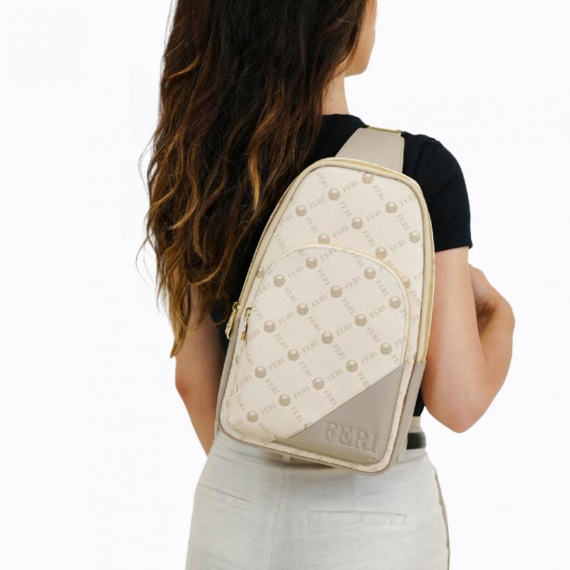 Elevate your everyday carry with the FERI Signature Monogram Sling Bag, a sleek and modern accessory designed for those who value both style and function. This compact crossbody is expertly crafted from textured beige leather, featuring an all-over FERI monogr...