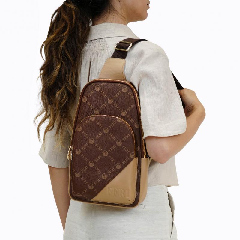 Elevate your everyday carry with the FERI Signature Monogram Sling Bag, a sleek and modern accessory designed for those who value both style and function. This compact crossbody is expertly crafted from textured brown leather, featuring an all-over FERI monogr...