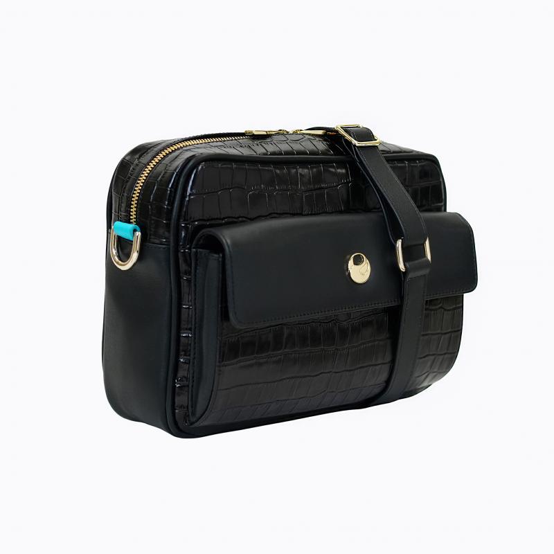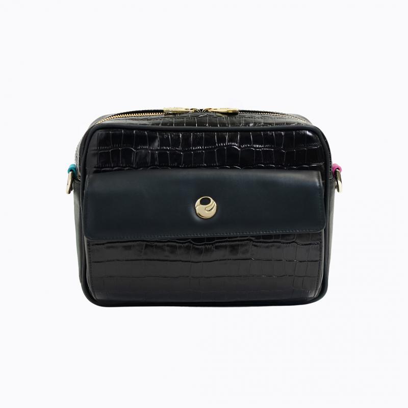 Elevate your style with the FERI Signature Messenger Bag, crafted for both elegance and practicality. This compact, rectangular messenger bag features a tone on tone nappa colour leather flap overlaying a Classic Croco Leather. The front flap is secured with a...