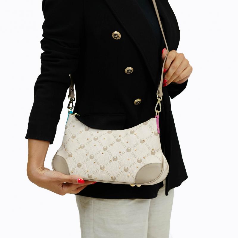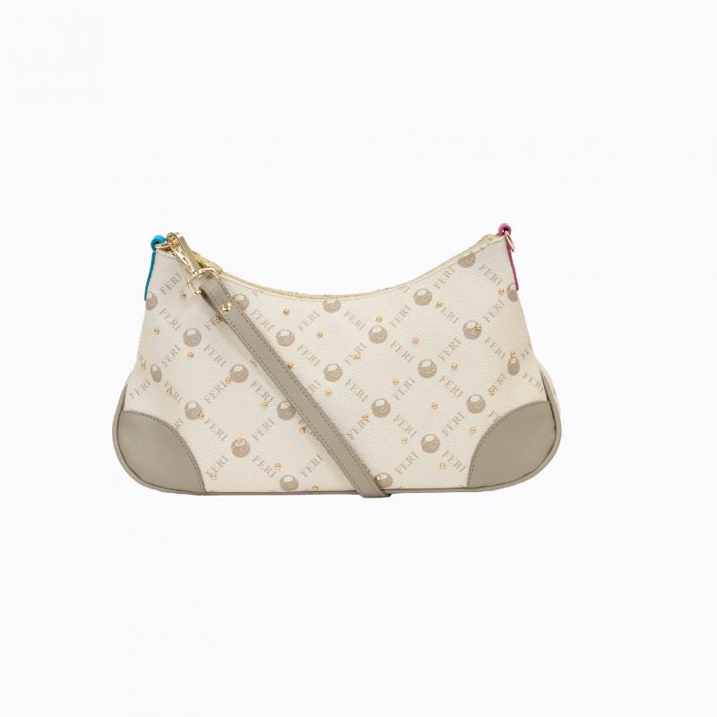A playful twist on elegance, the FERI Monogram Mini Purse combines timeless design with modern flair. Crafted from soft beige leather embossed with the iconic FERI monogram print, this compact silhouette is elevated with sparkling gold-tone studs for a touch o...
