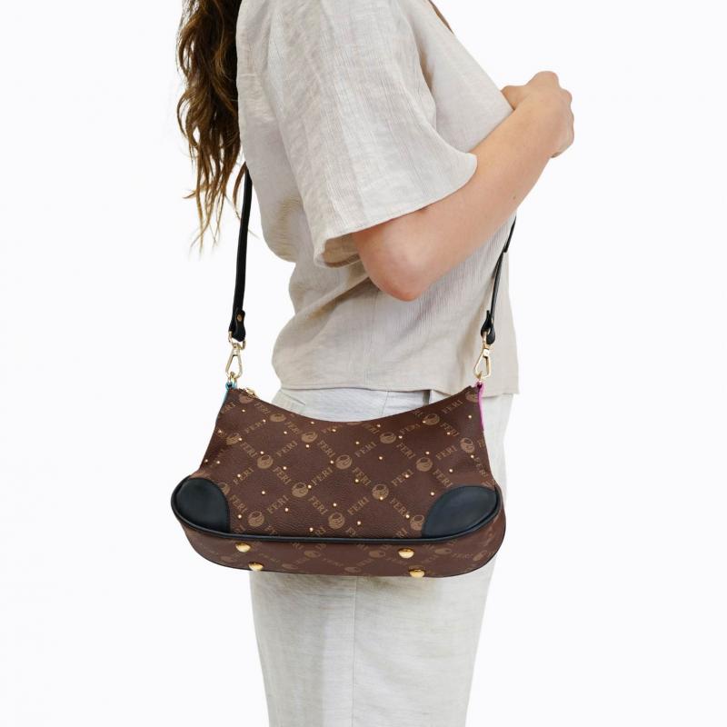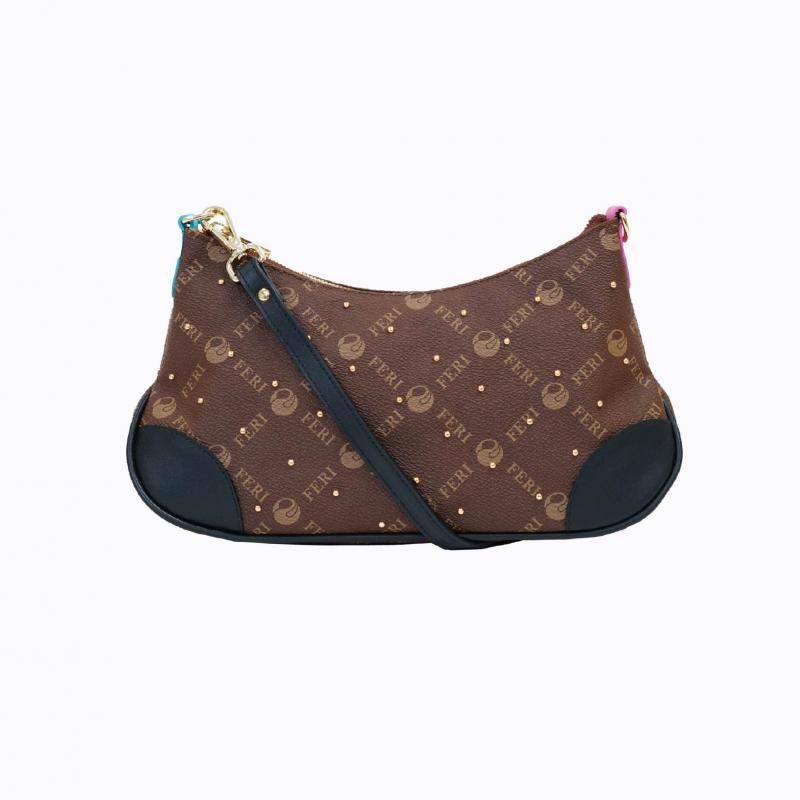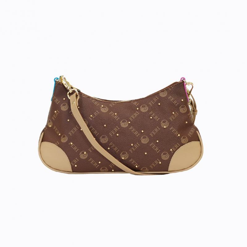A playful twist on elegance, the FERI Monogram Mini Purse combines timeless design with modern flair. Crafted from classic brown leather embossed with the iconic FERI monogram print, this compact silhouette is elevated with sparkling gold-tone studs for a touc...