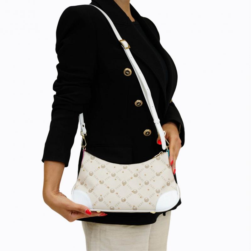 Elevate your style with the FERI Signature Messenger Bag, crafted for both elegance and practicality. This compact, rectangular messenger bag features a refined two-tone design with a contrast colour flap overlaying a beige leather-textured base adorned with t...