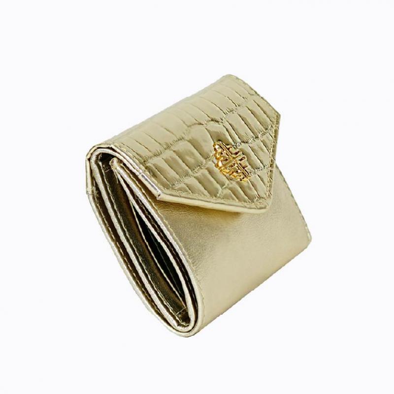 Starlet Vivid Compact Trifold Wallet - Gold Croco