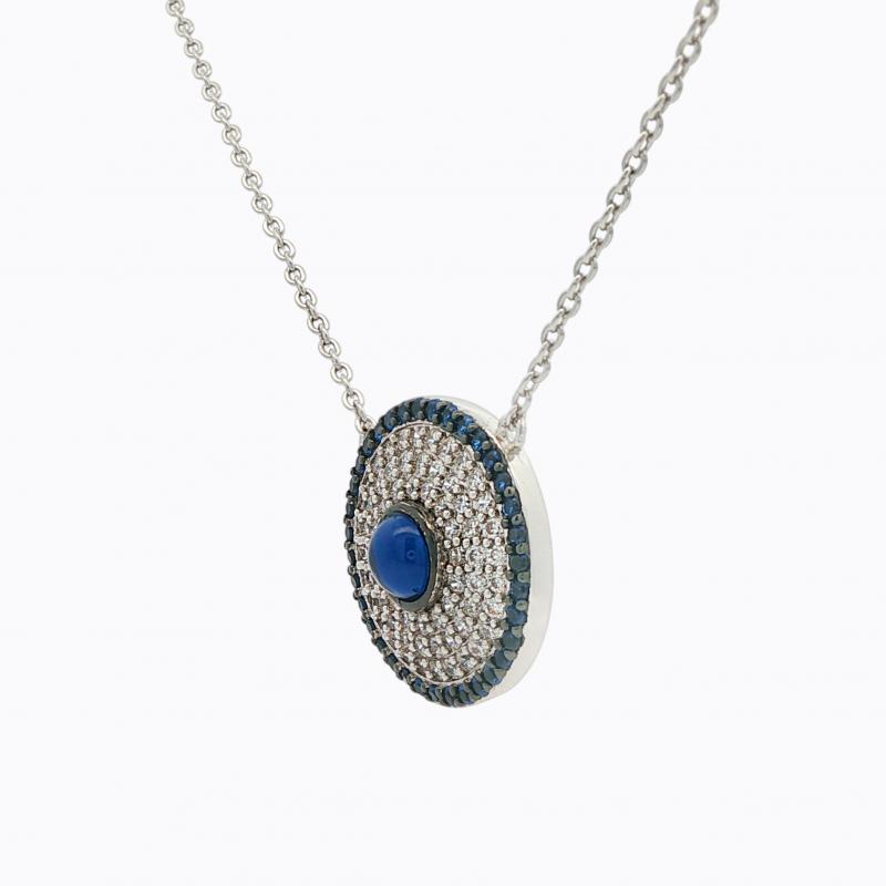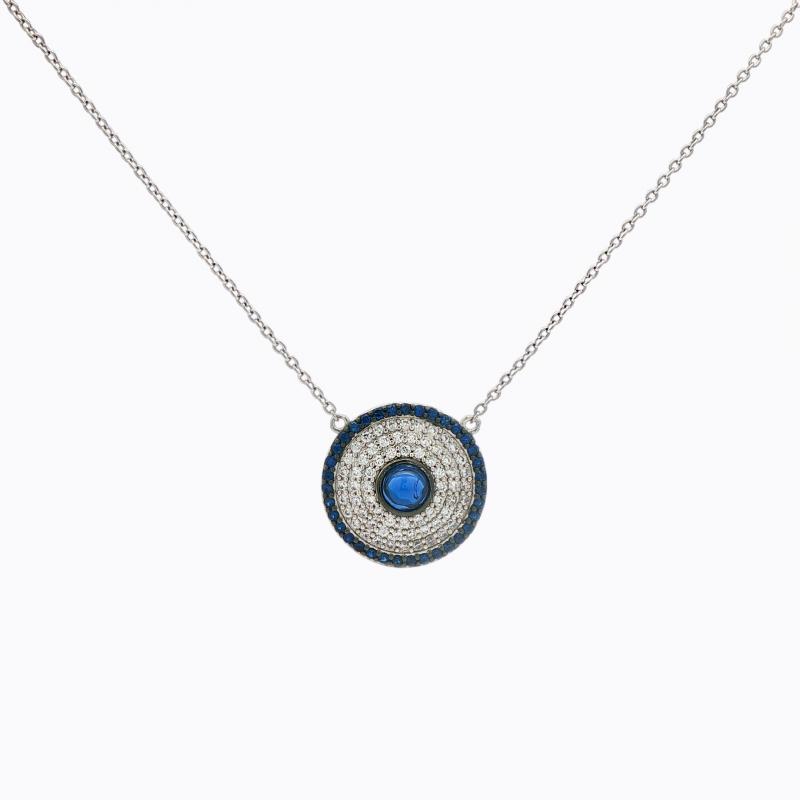 - Exclusive 950 purity Siledium necklace - Round Evil eye set with AAA white & blue cubic zirconia - Hypoallergenic -Dimensions: 26cm Chain including pendant Invest with confidence with FERI Designer Lines...
