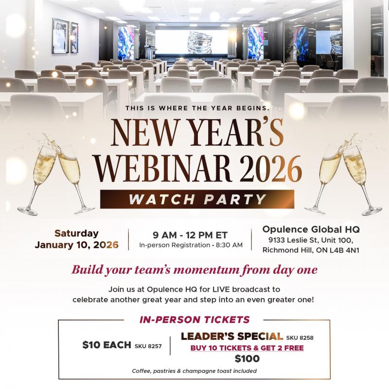 New Year’s Webinar 2026 Watch Party Build your team’s momentum from day one. Join us at Opulence HQ for LIVE broadcast to celebrate another great year and step into an even greater one! Watch together, win together, get your tickets & start the year...