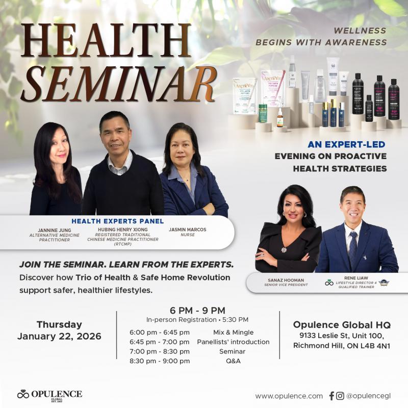 Health Seminar - Wellness Begins With Awareness Join us for an expert-led evening seminar on proactive health strategies and discover how Trio of Health & Safe Home Revolution support safer, healthier lifestyles. Thursday, January 22, 2026 6 PM - 9 PM (...