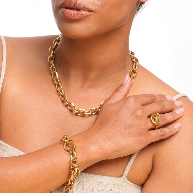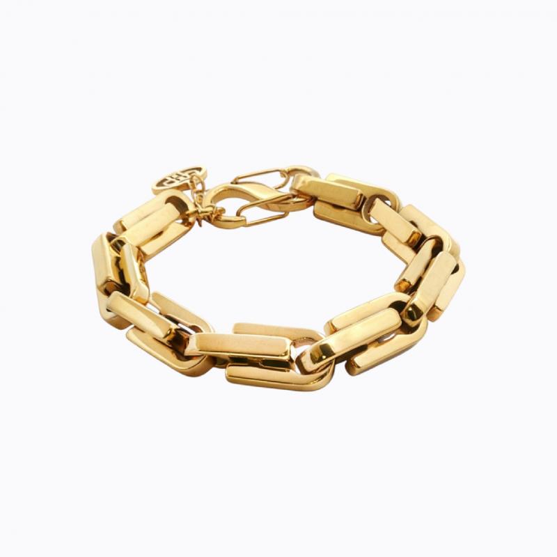 POSH- Striking bracelet featuring a bold chain link design that makes a powerful fashion statement - Crafted from high-quality stainless steel with luxurious 18K gold plating for a stunning and durable finish - Lightweight construction ensures comfortable wear, ...