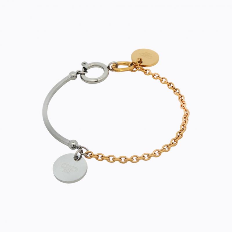 POSH- Silver-toned stainless steel links bracelet with polished 18K gold-plated shackle rings - Dual-tone mixed-metal design for a modern, sculptural aesthetic - Bold interlocking shackle centerpiece symbolizing unity and strength - Lightweight construction ens...