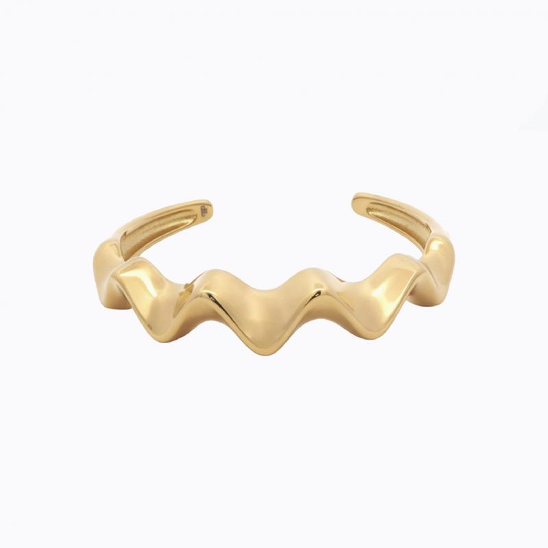 POSH- Stylish bangle featuring a unique wave design that adds a contemporary flair to your accessory collection - Crafted from high-quality stainless steel with luxurious 18K gold plating for a stunning and durable finish - Lightweight construction ensures comfo...