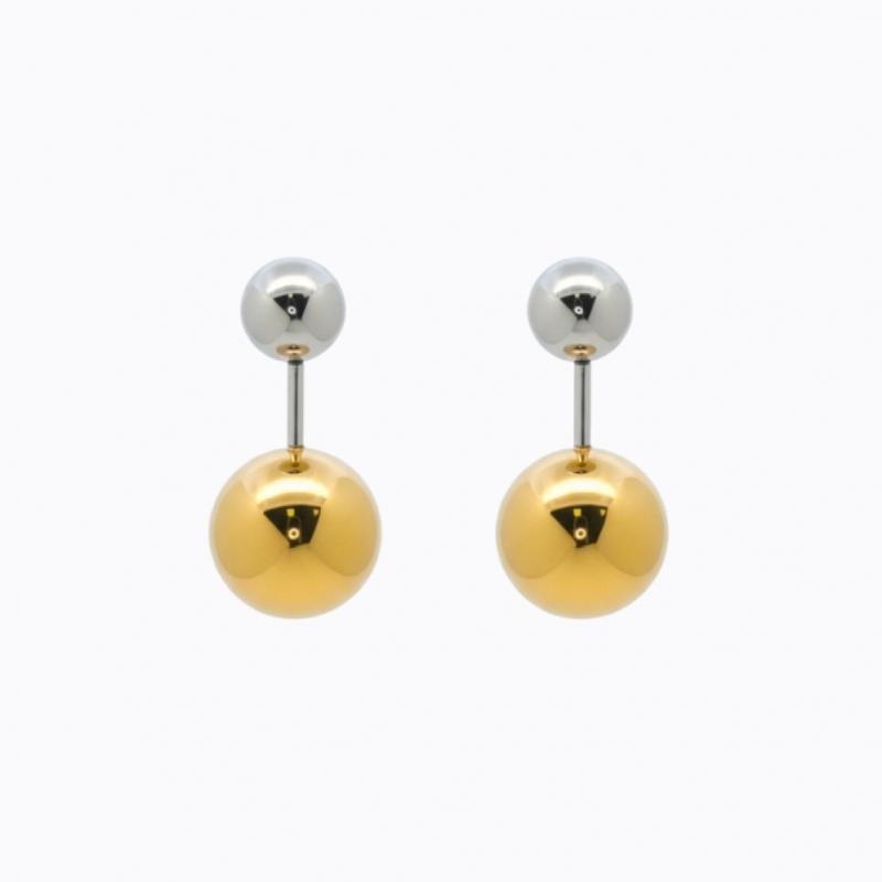 POSH- Stylish earrings featuring a contemporary two- tone design with gold and silver ball accents for a chic, modern look - Crafted from high-quality stainless steel with luxurious 18K gold plating for a stunning and durable finish - Lightweight construction en...