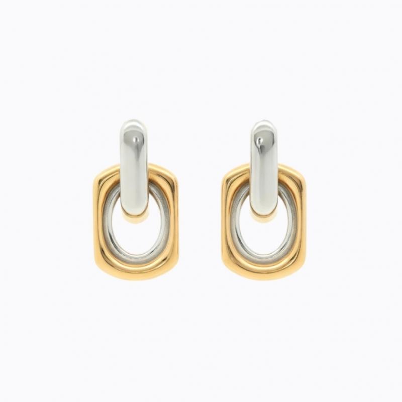 POSH- Elegant earrings featuring a unique geometric design that combines gold and silver tones for a sophisticated look - Crafted from high-quality stainless steel with luxurious 18K gold plating for a stunning and durable finish - Lightweight construction ensur...