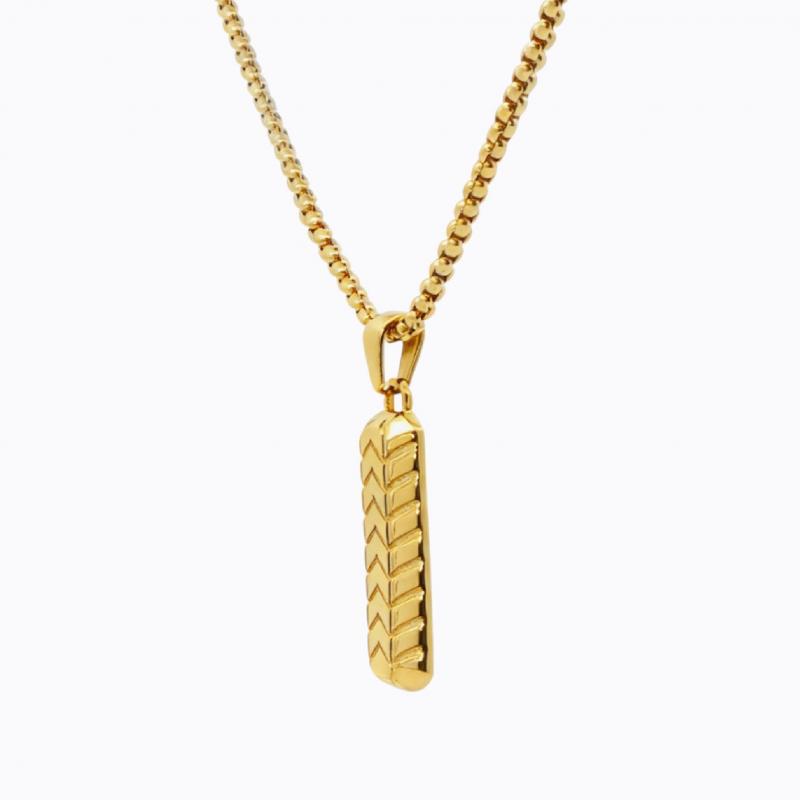 - Distinctive stainless steel necklace featuring 18K gold plating and a textured tire tread pendant for a unique accessory - Bold tread design for an edgy and modern look - Polished finish that enhances the pendant’s striking appearance - Sturdy chain for...