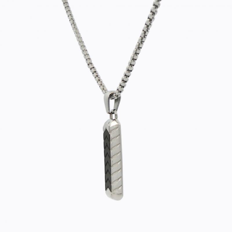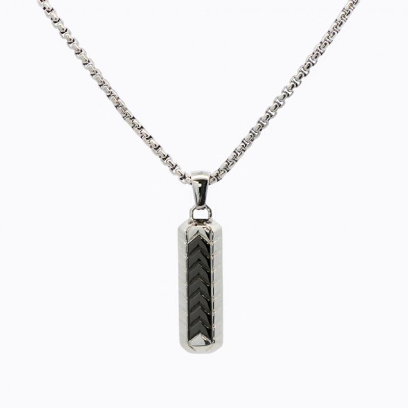 - Rugged stainless steel necklace featuring a striking black plating center and a textured tire tread pendant for a bold accessory - Unique tread design that adds an edgy flair - Contrasting polished stainless steel edges for a modern touch - Sturdy chain f...