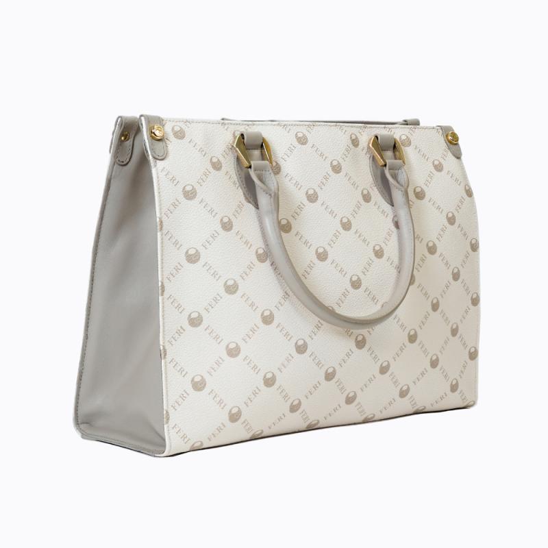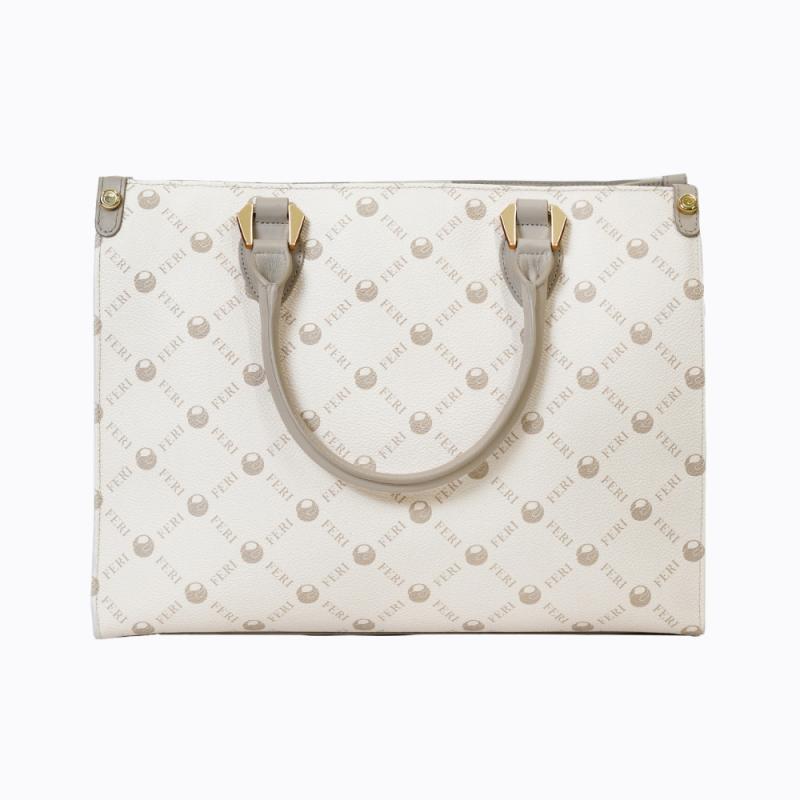FERIWhere sophistication meets everyday utility, the FERI Classic Monogram Structured Tote Bag is a bold expression of refined luxury. Crafted from soft beige leather and adorned with the iconic FERI monogram in a timeless diagonal print, this tote exudes class an...