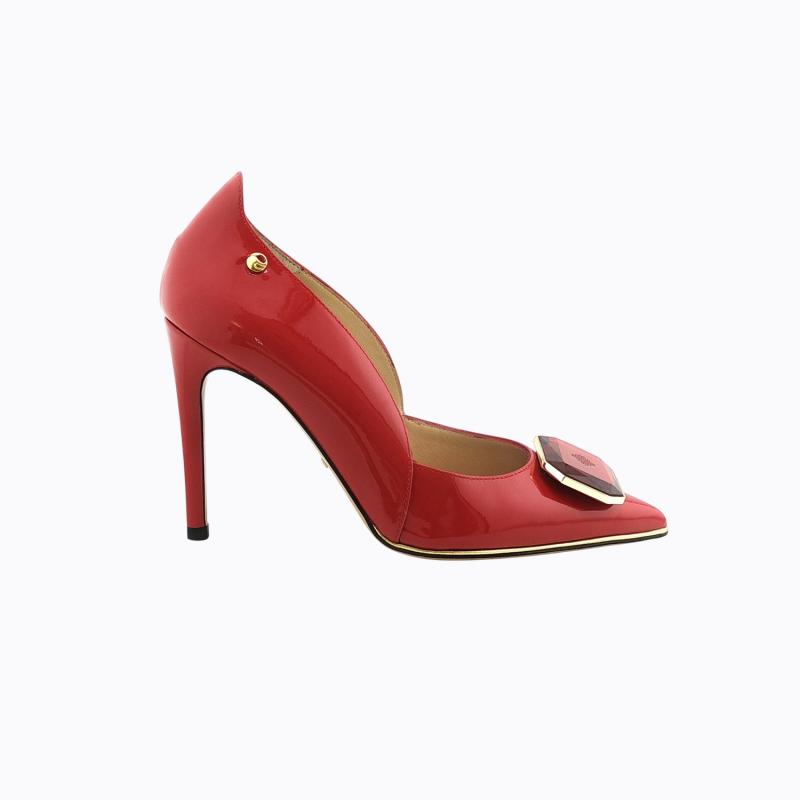 FERI- Glossy Red Patent Leather Stiletto Heels - Seductive stiletto heels with a sharply sculpted pointed toe and swan-inspired curves, blending a confident edge with refined sophistication - Crafted from high-quality glossy red patent leather for a stunning fin...