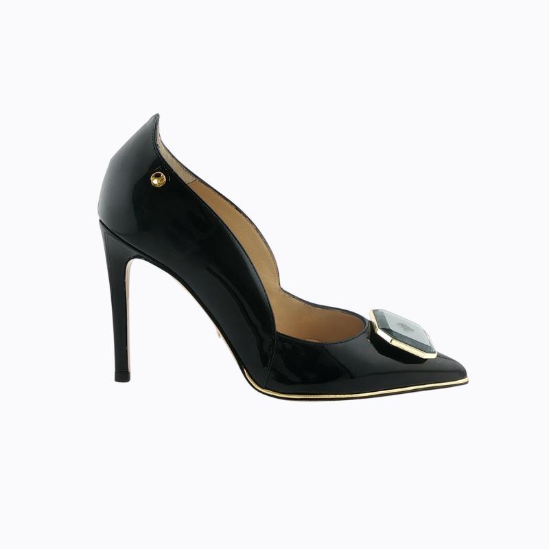 FERI- Glossy Black Patent Leather Stiletto Heels - Seductive stiletto heels with a sharply sculpted pointed toe and swan-inspired curves, blending a confident edge with refined sophistication - Crafted from high-quality glossy black patent leather for a stunning...
