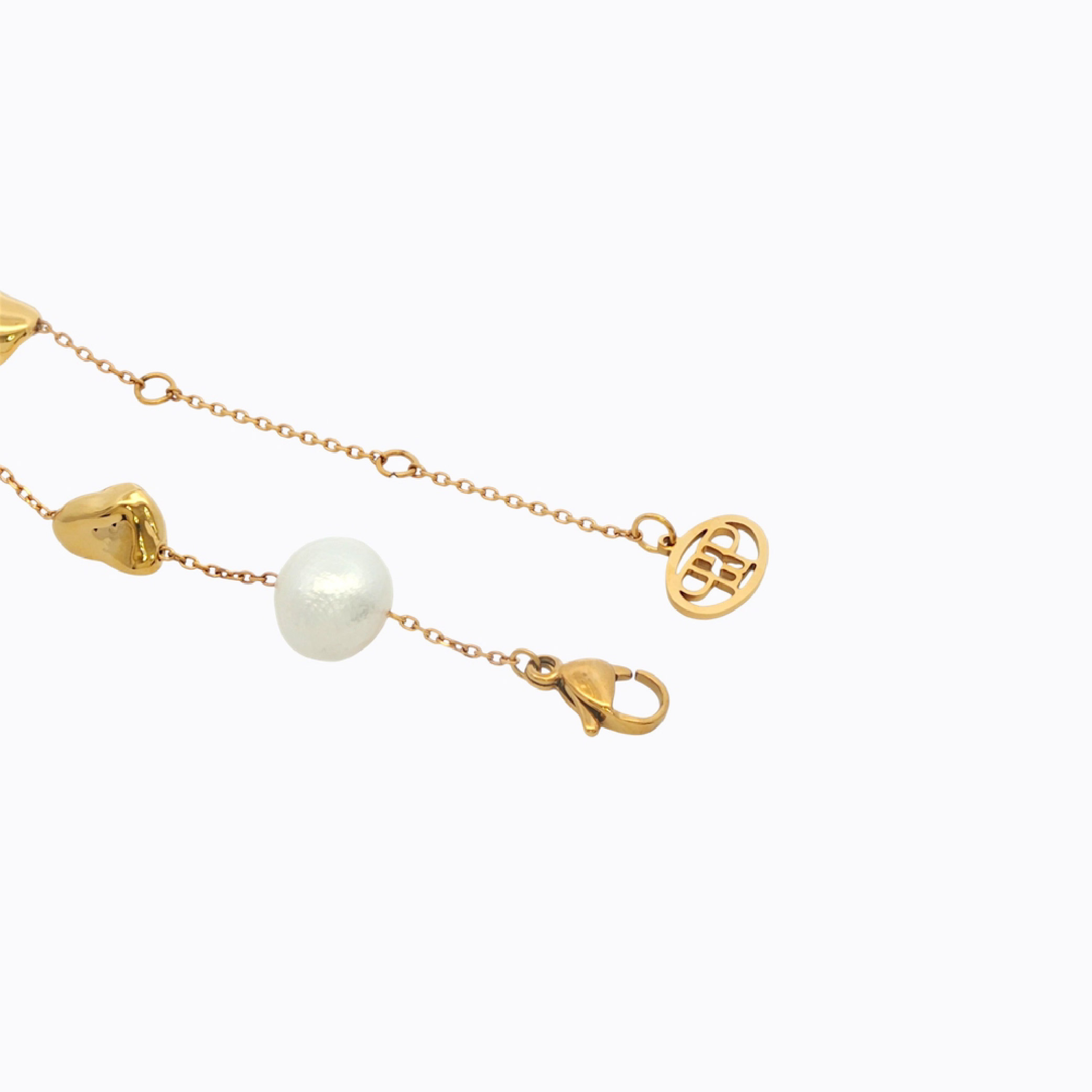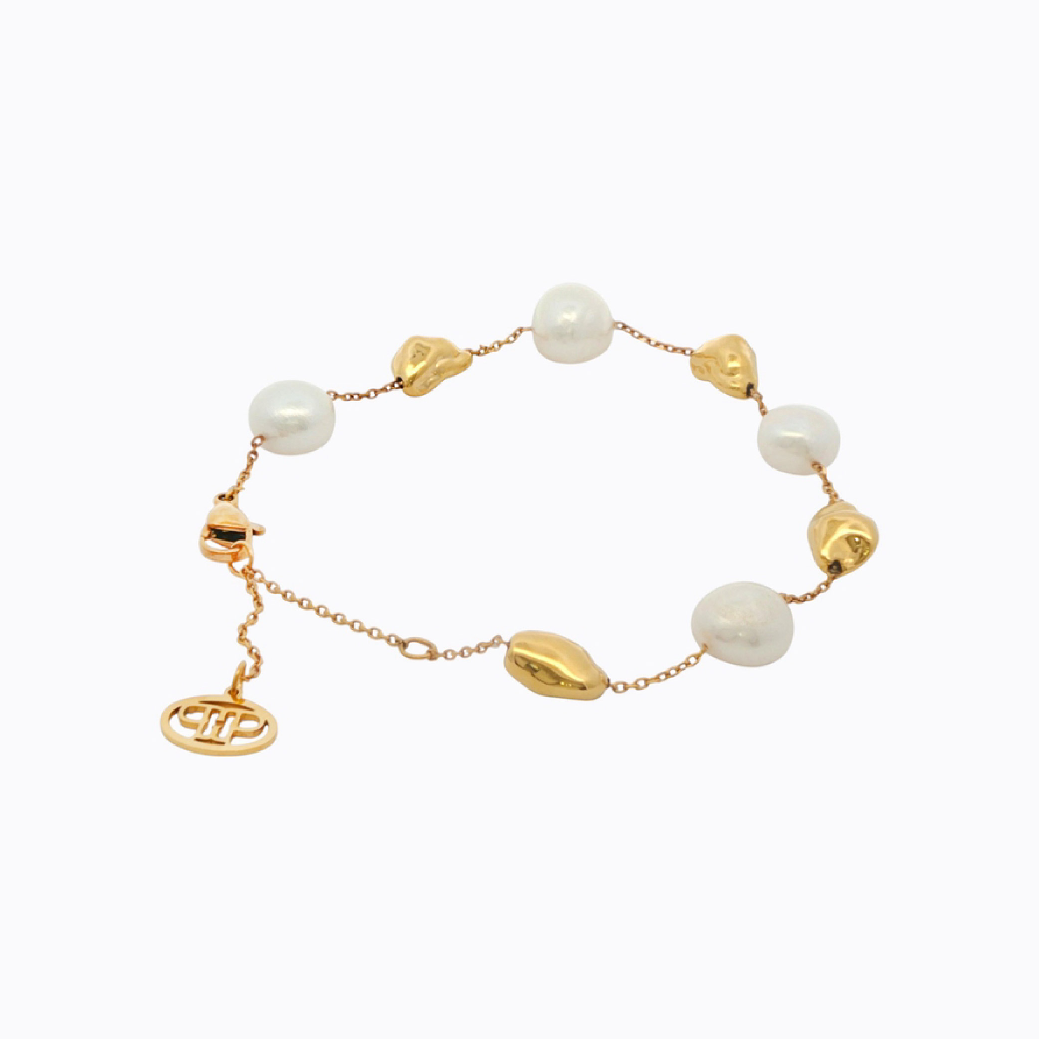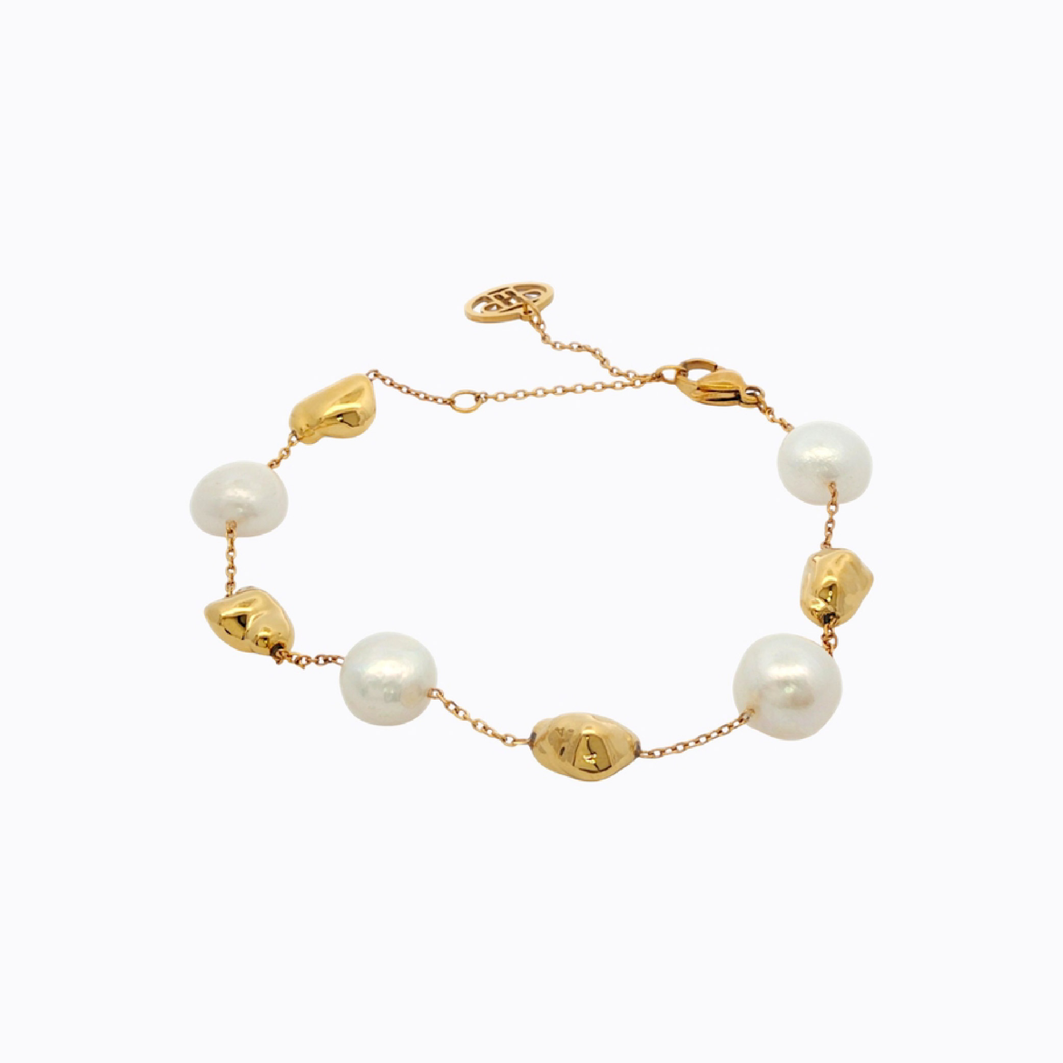 - Fresh water pearls paired with 18K gold–plated nugget accents for a chic, modern bracelet
