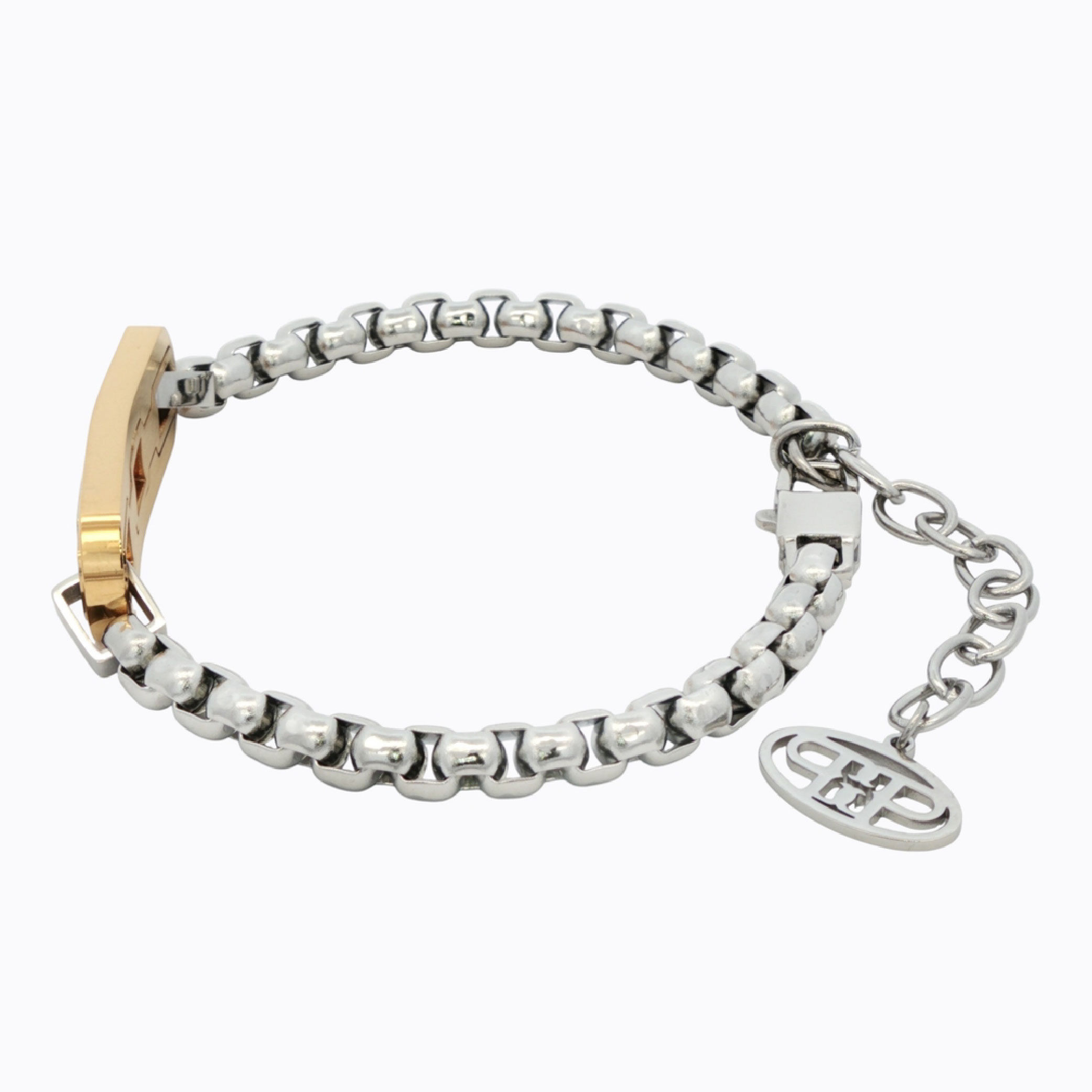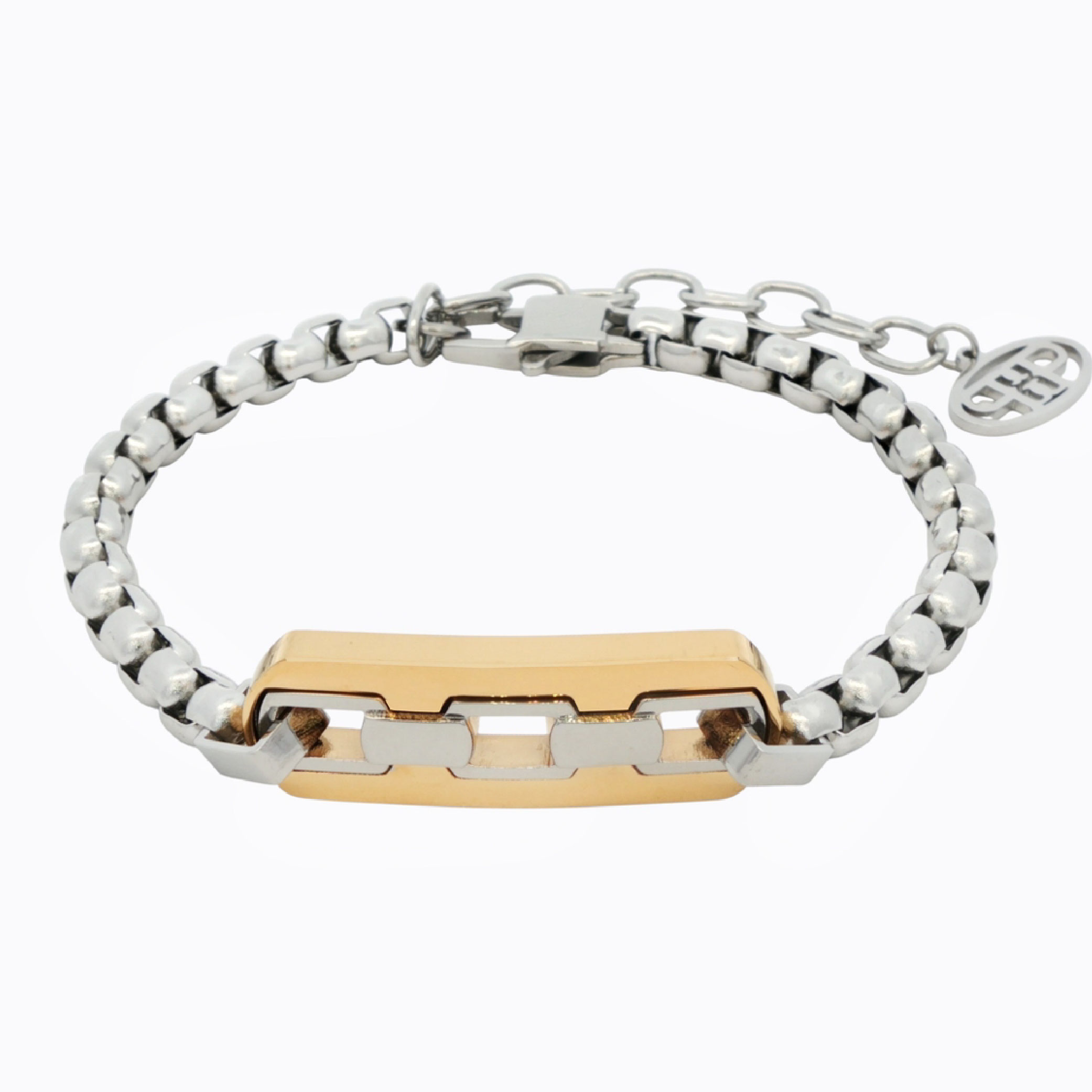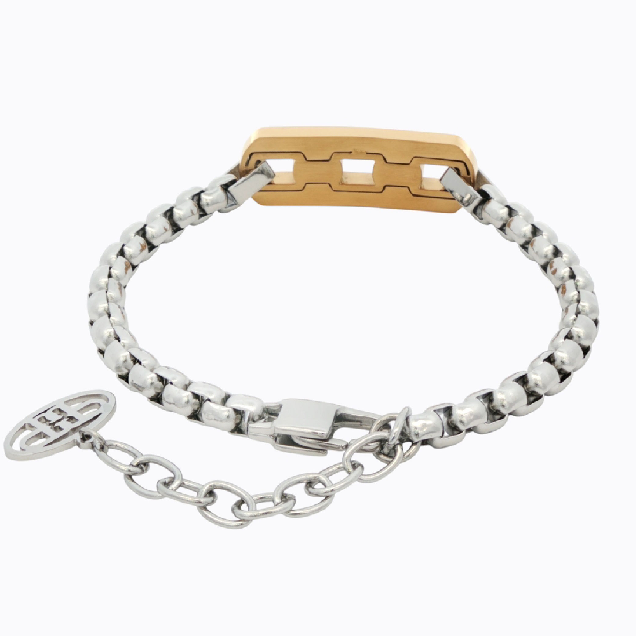 - Stylish stainless steel bracelet featuring 18K gold plating and a modern link design for a sophisticated accessory