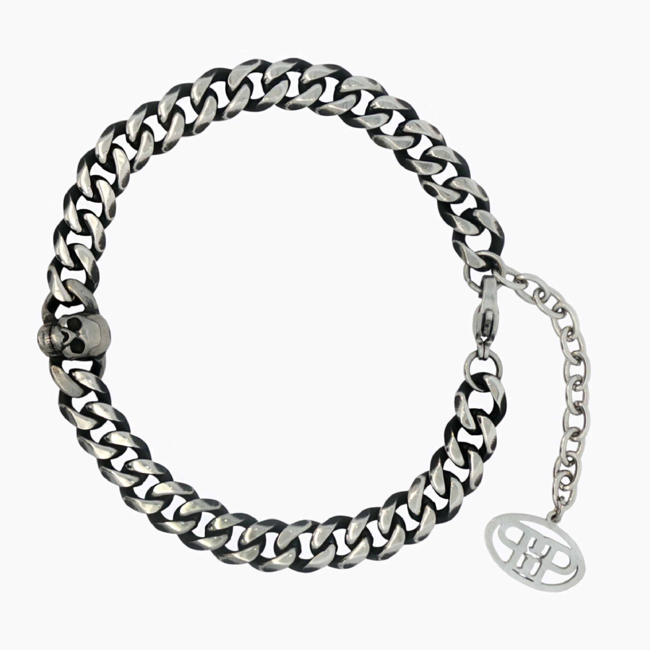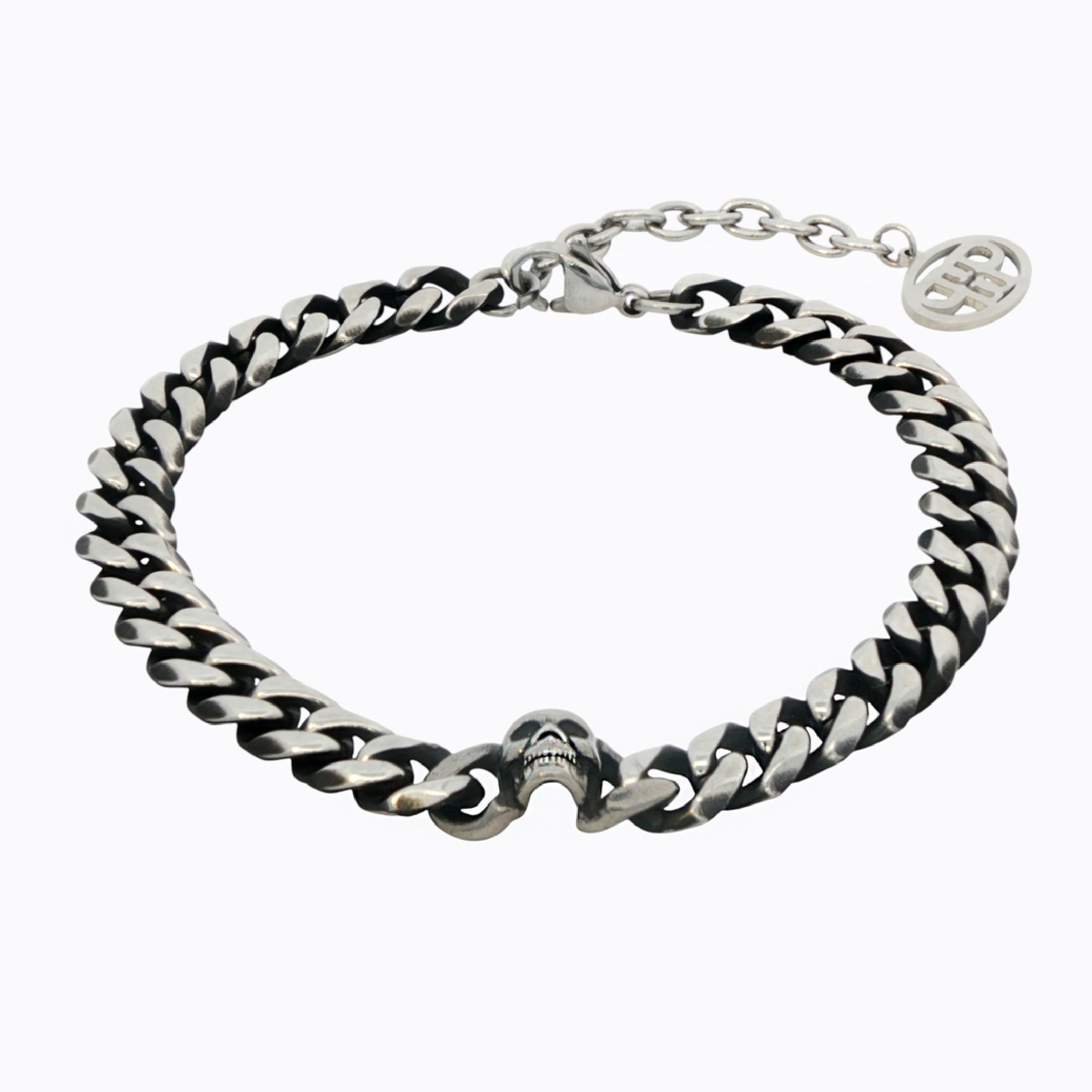 - Edgy stainless steel bracelet featuring a bold chain design with a unique skull accent