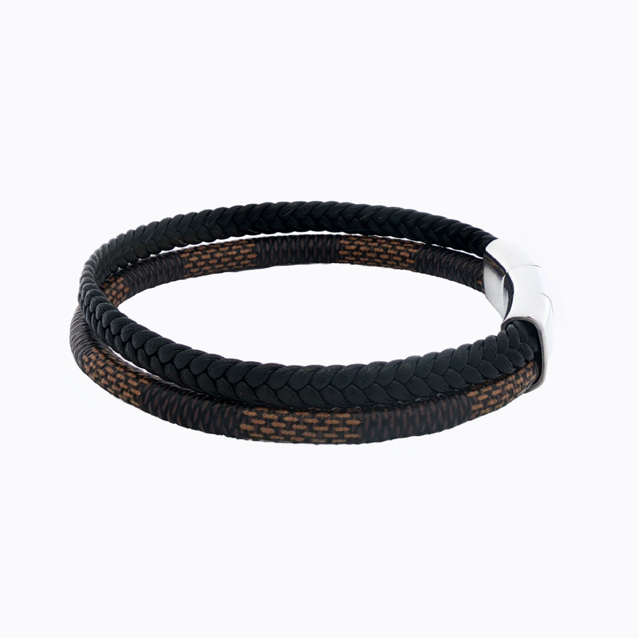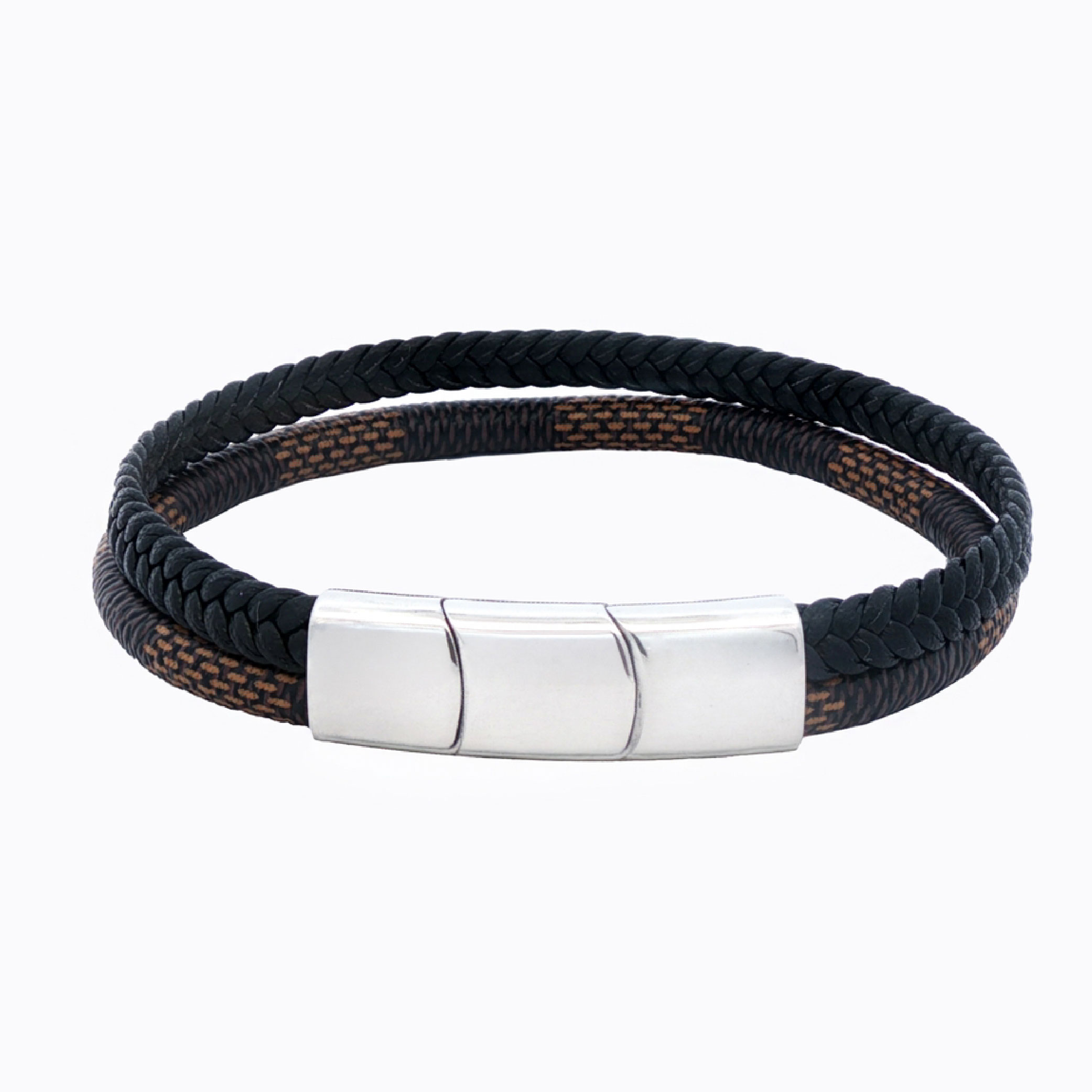 - Stylish stainless steel and PU leather bracelet featuring a sleek braided design for a modern accessory