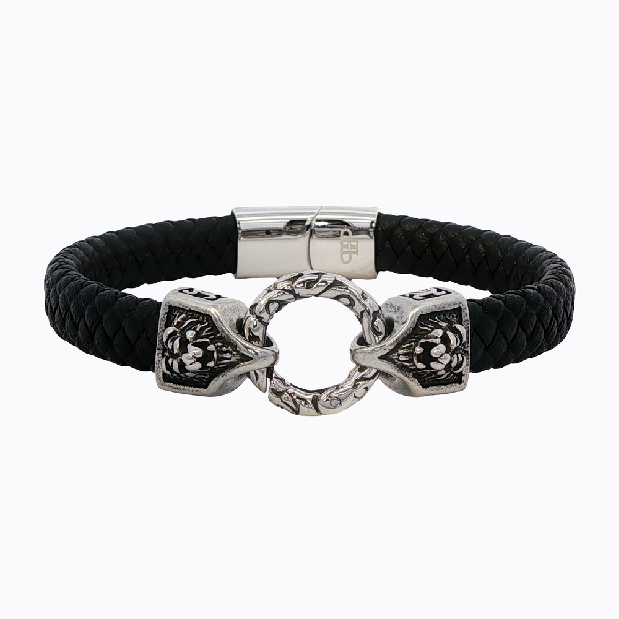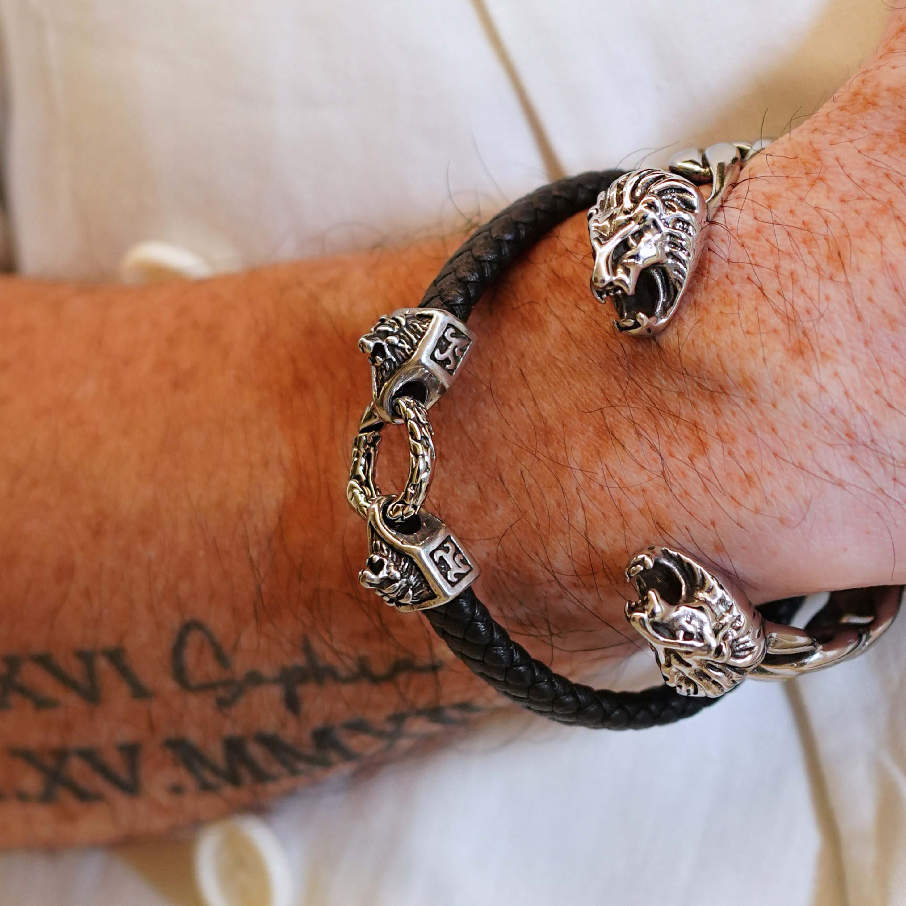 - Ornate stainless steel clasp with lion head accents for a bold statement