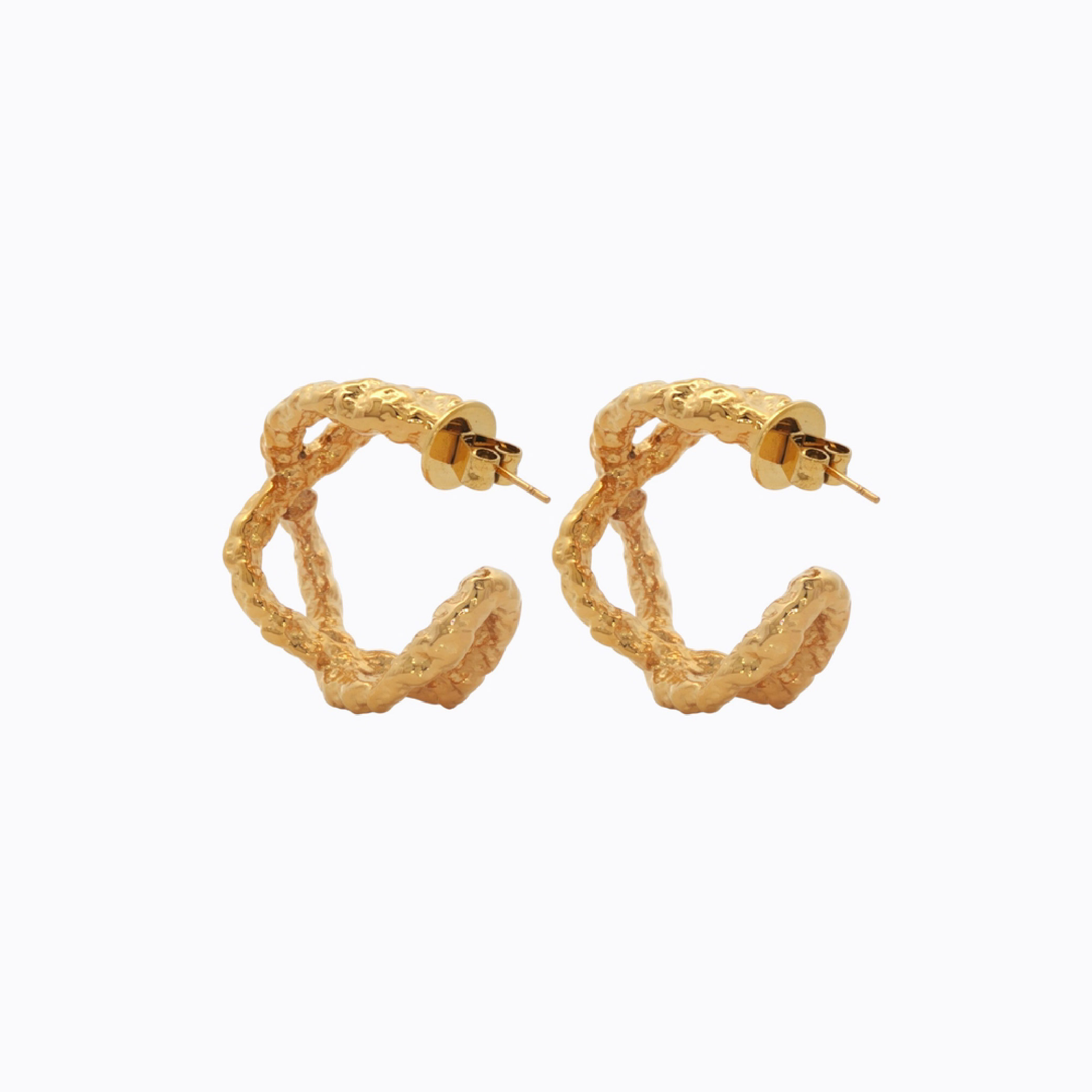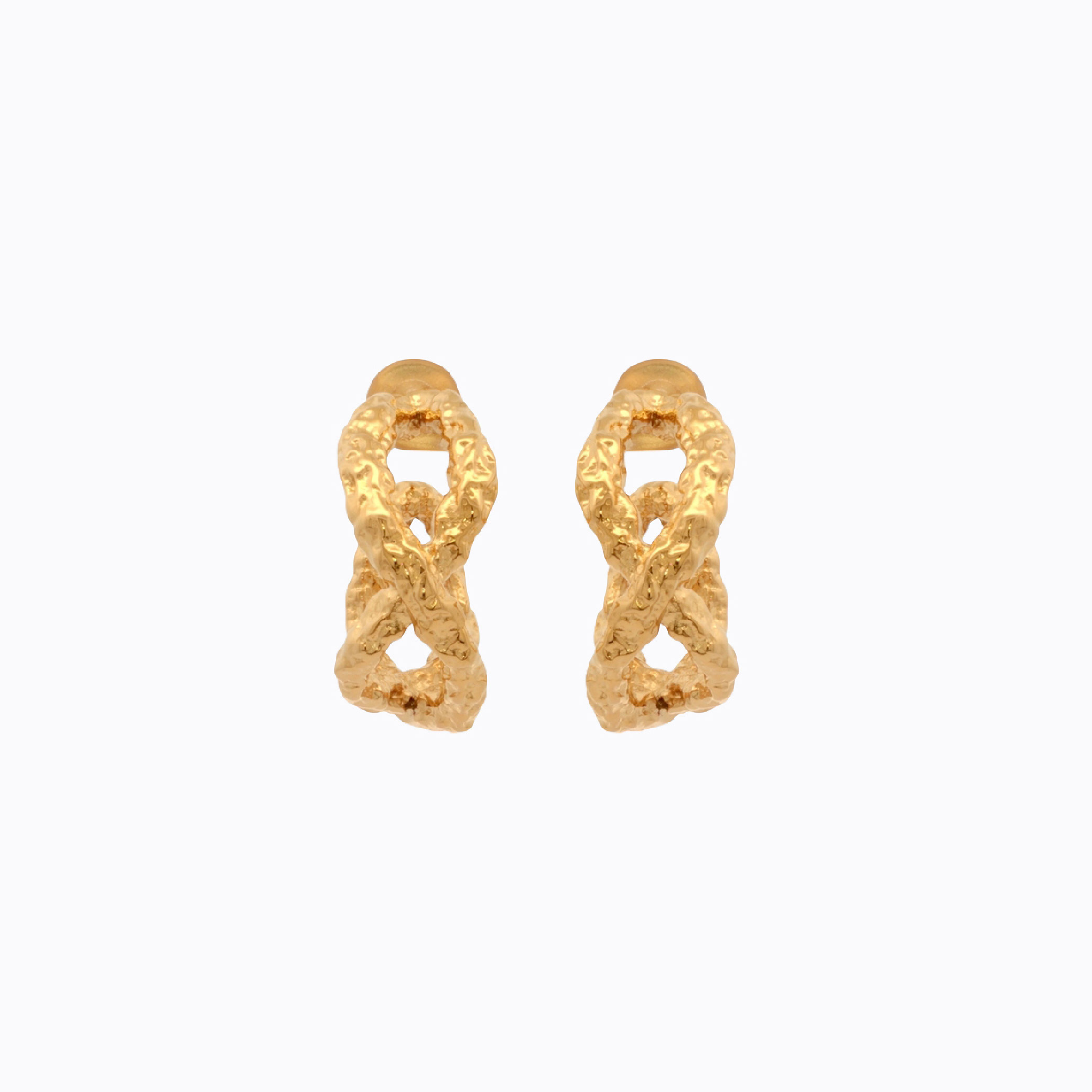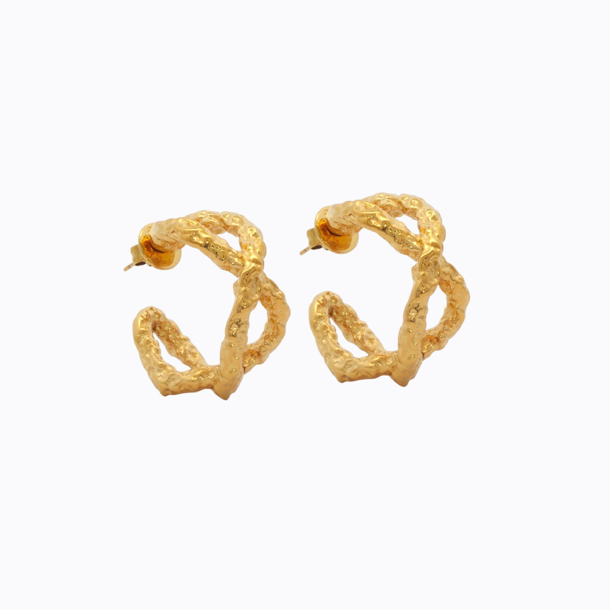 - Stunning stainless steel earrings featuring luxurious 18K gold plating and a unique twisted design for an eye catching accessory