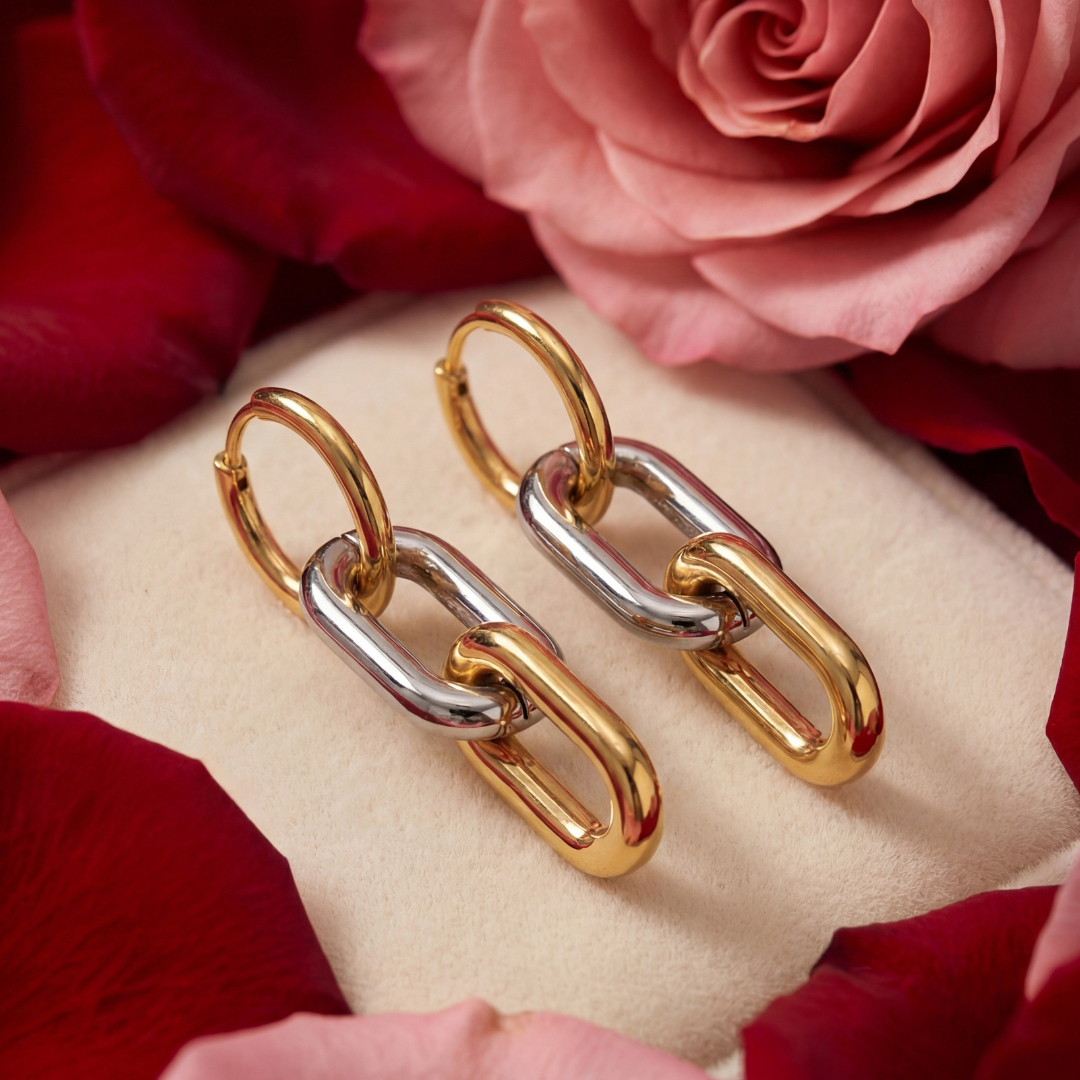 - Striking earrings featuring a bold chain link design that makes a powerful fashion statement