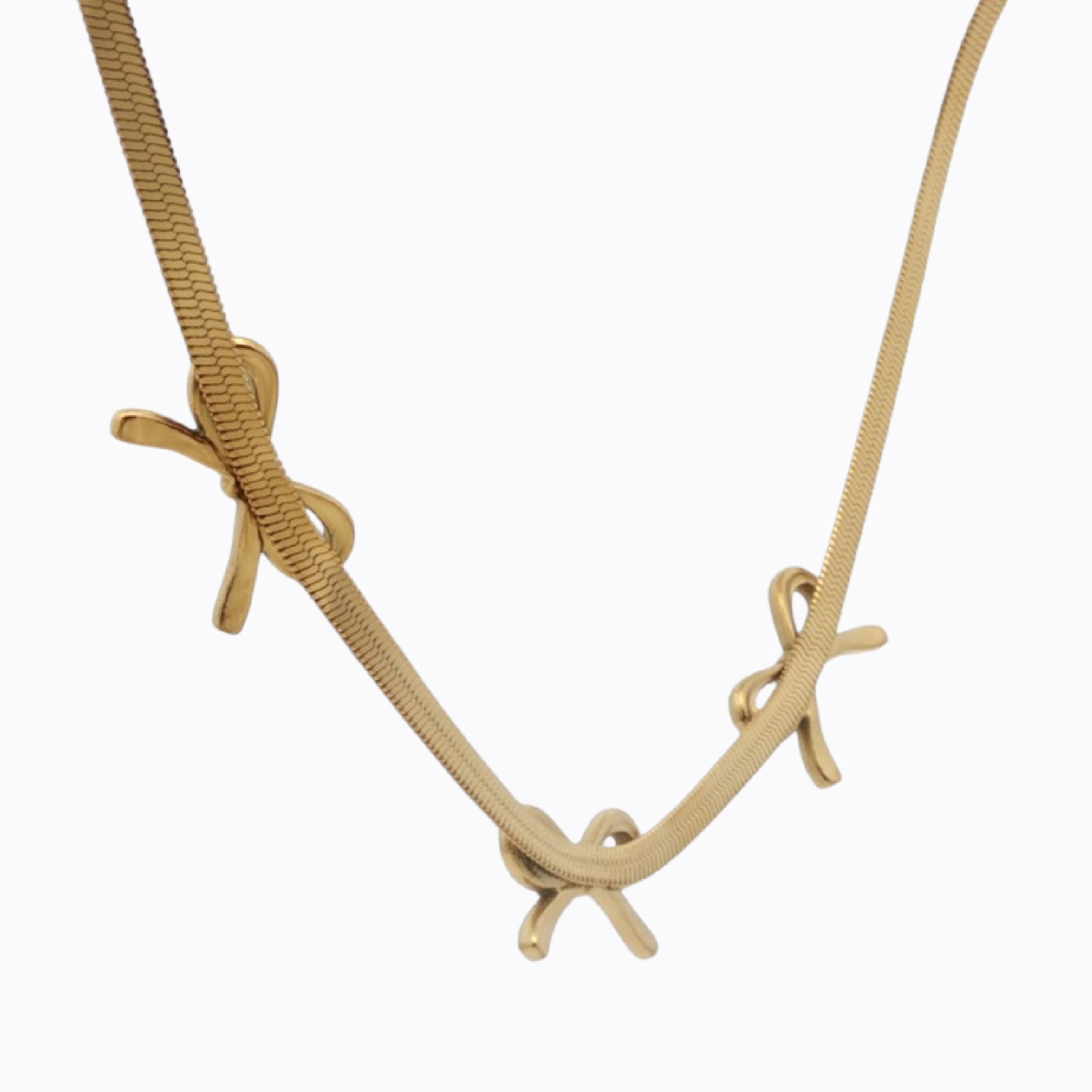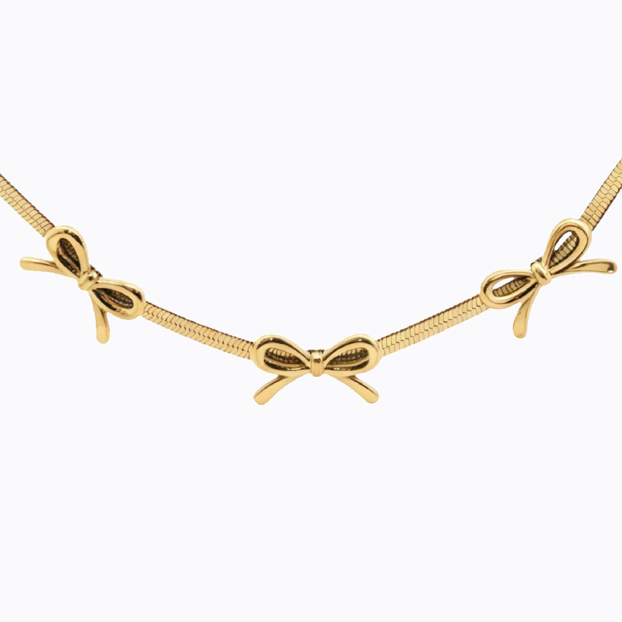 - Charming stainless steel necklace featuring 18K gold plating and delicate bow details for a playful accessory