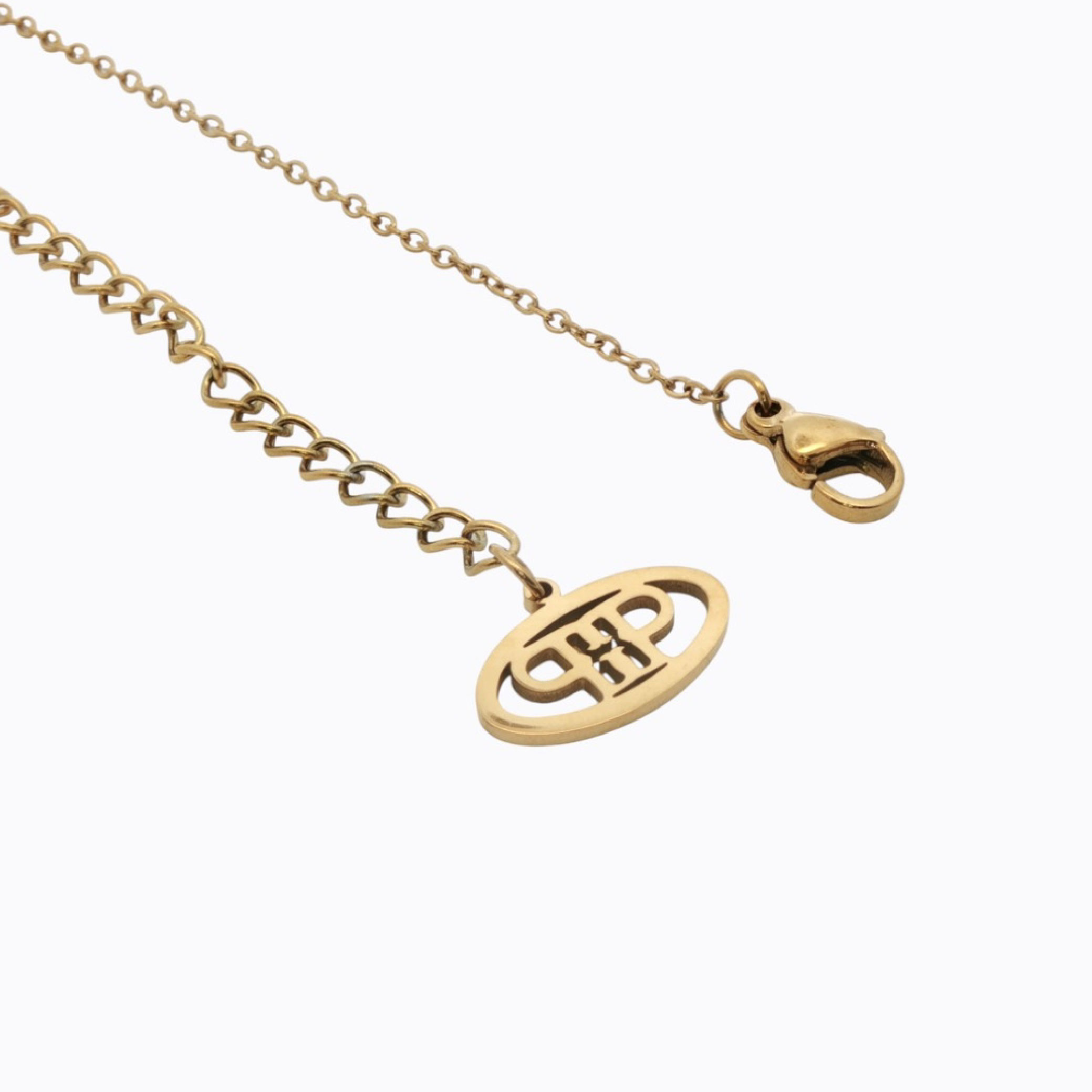 - Stainless Steel Necklace with 18K Gold Plating and Pearl Detail