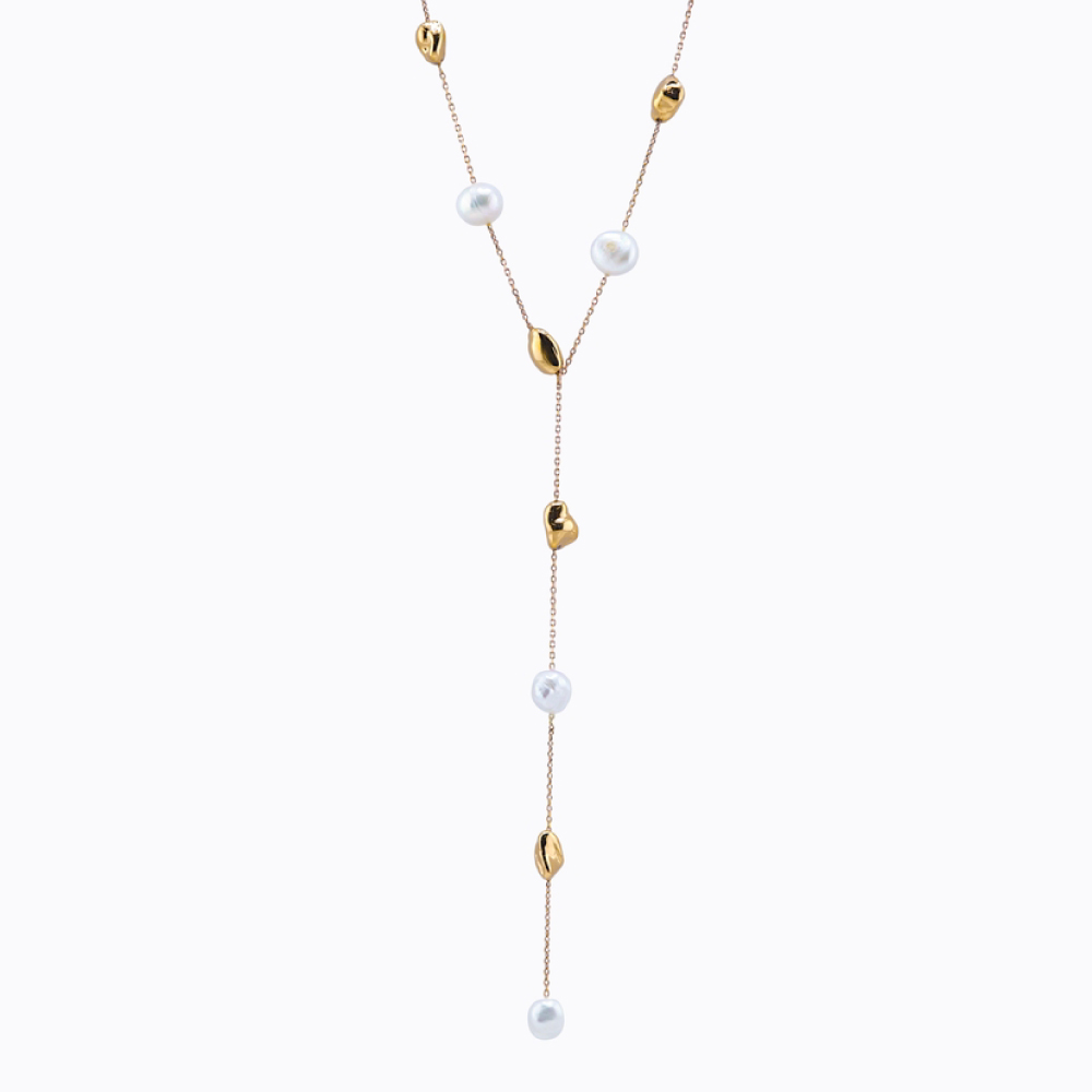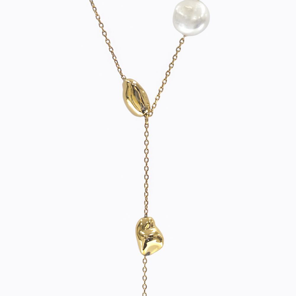 - Fresh water pearls paired with 18K gold-plated nugget accents for a chic, modern necklace