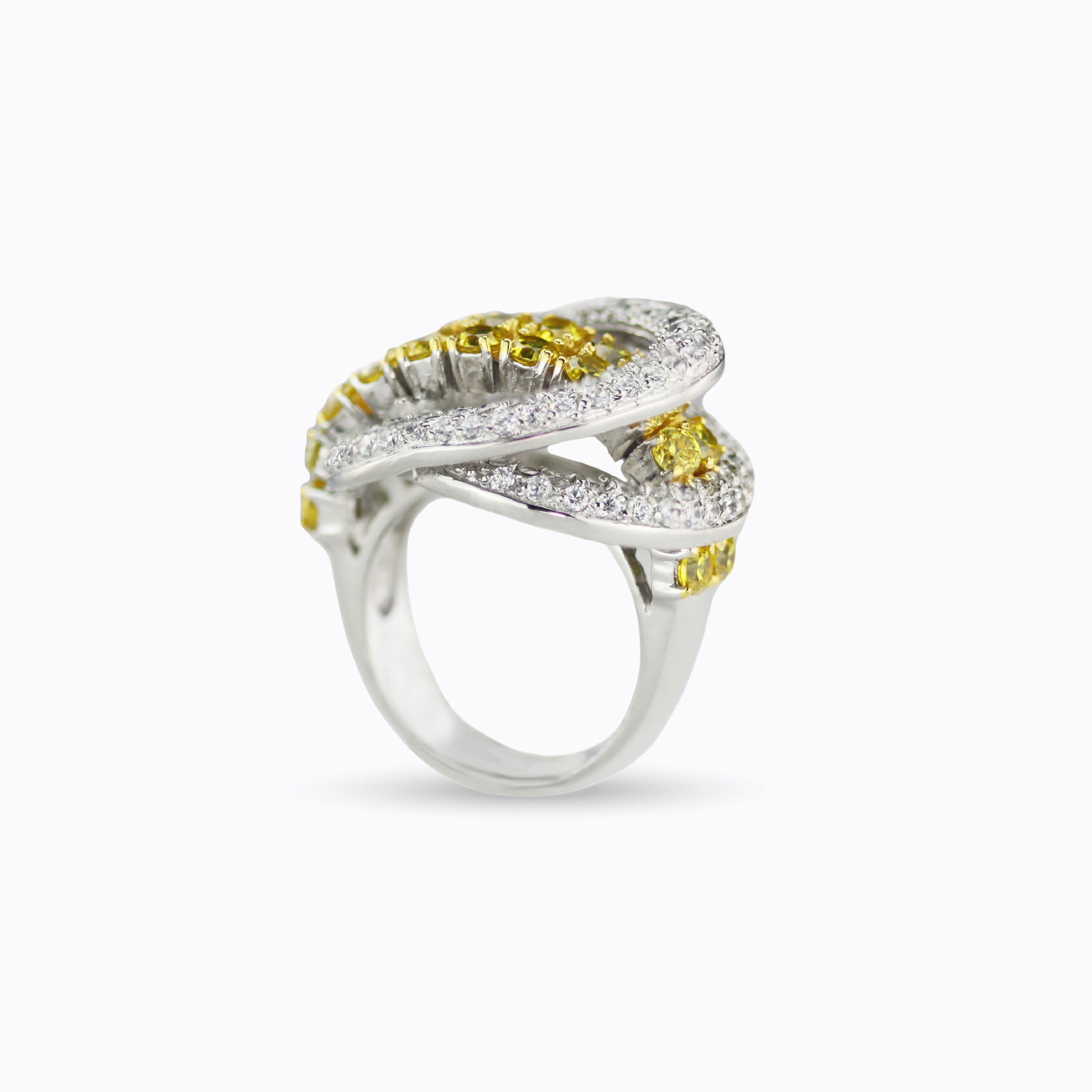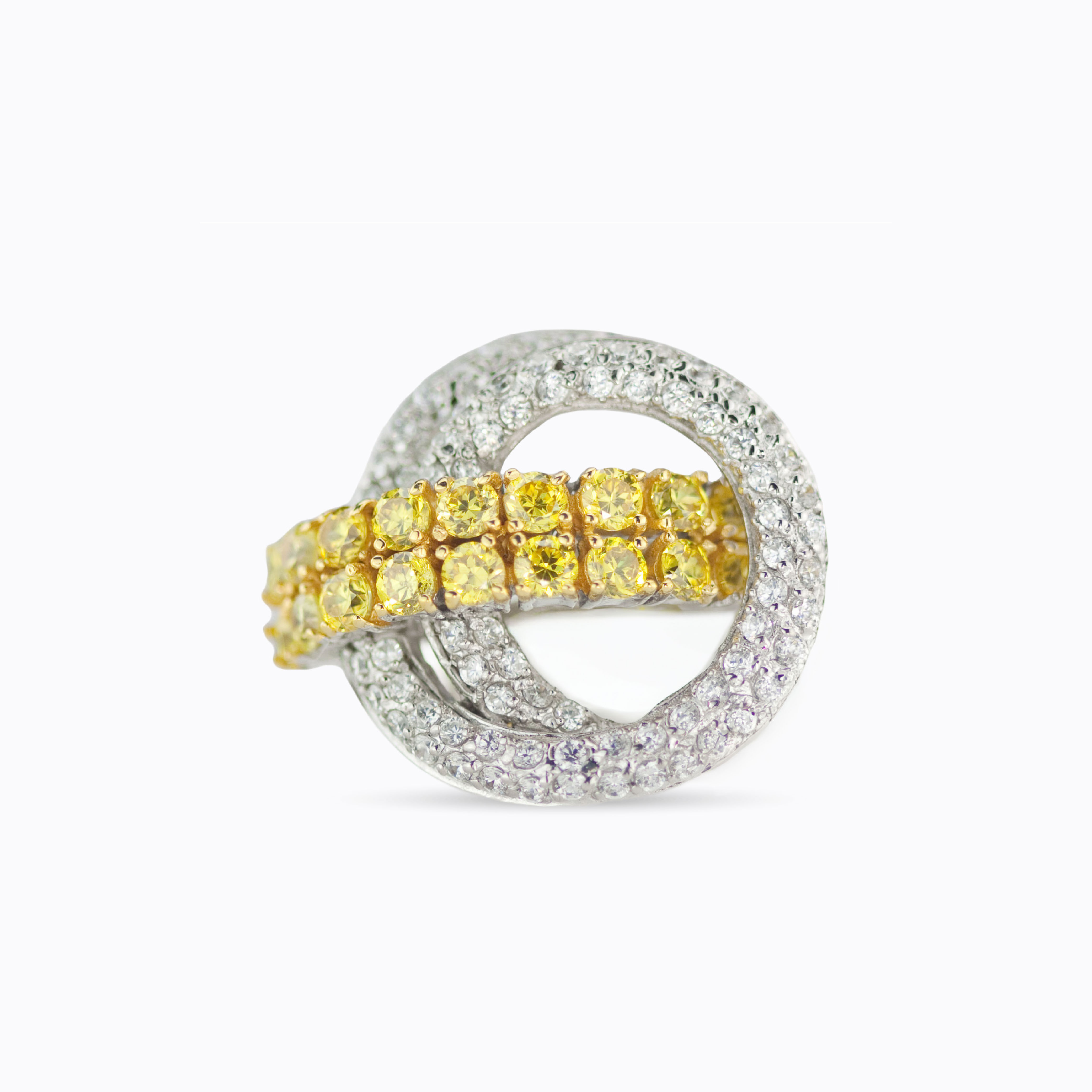 - Set with AAA white cubic zirconia and yellow cubic zirconia