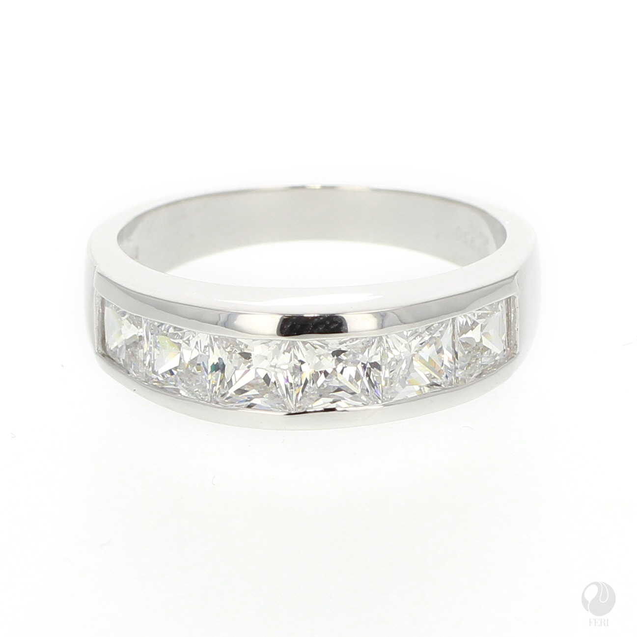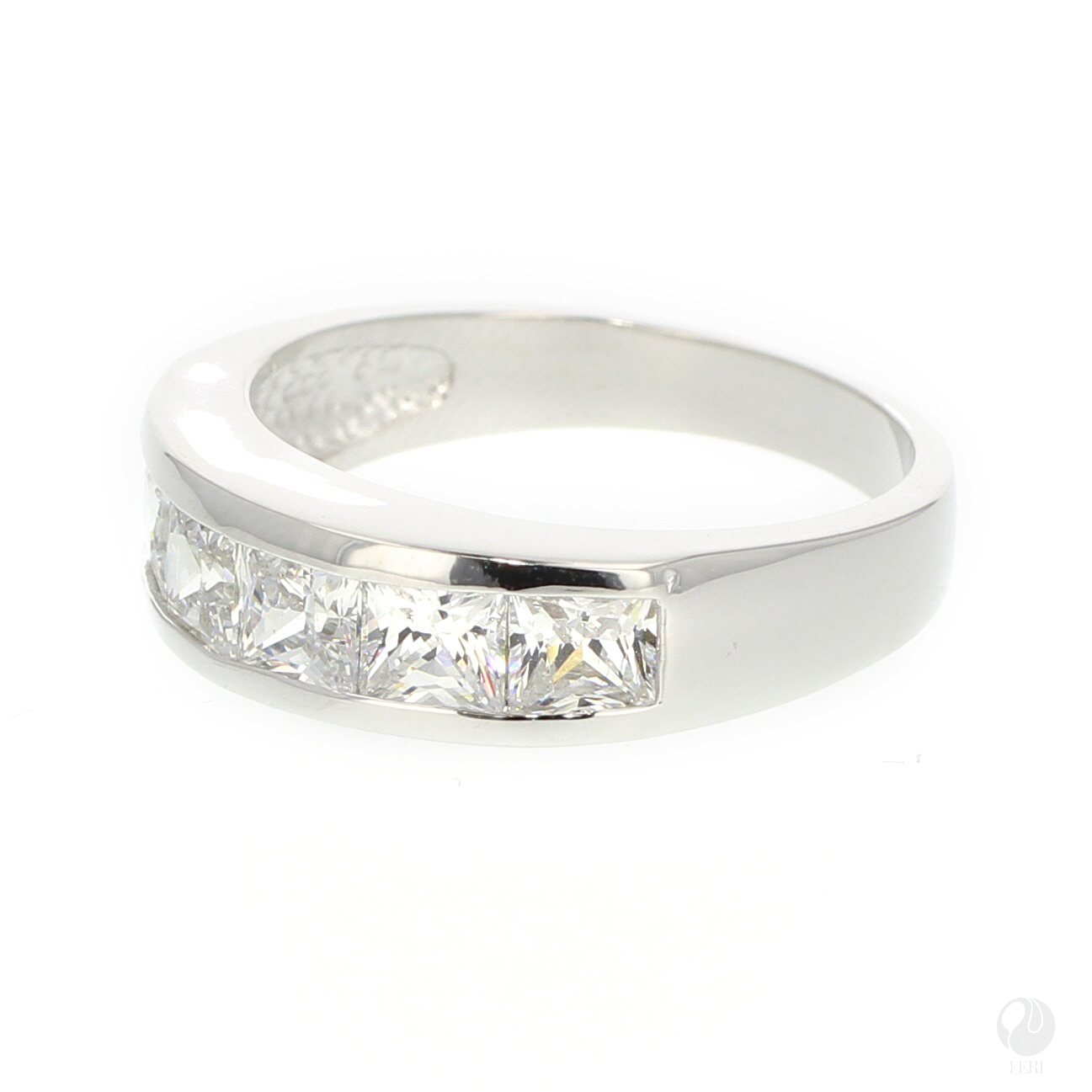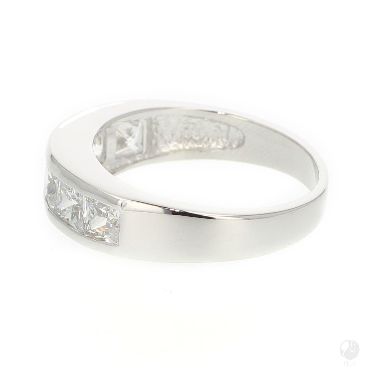 - Set with exclusive FERI Swan cut lab stones