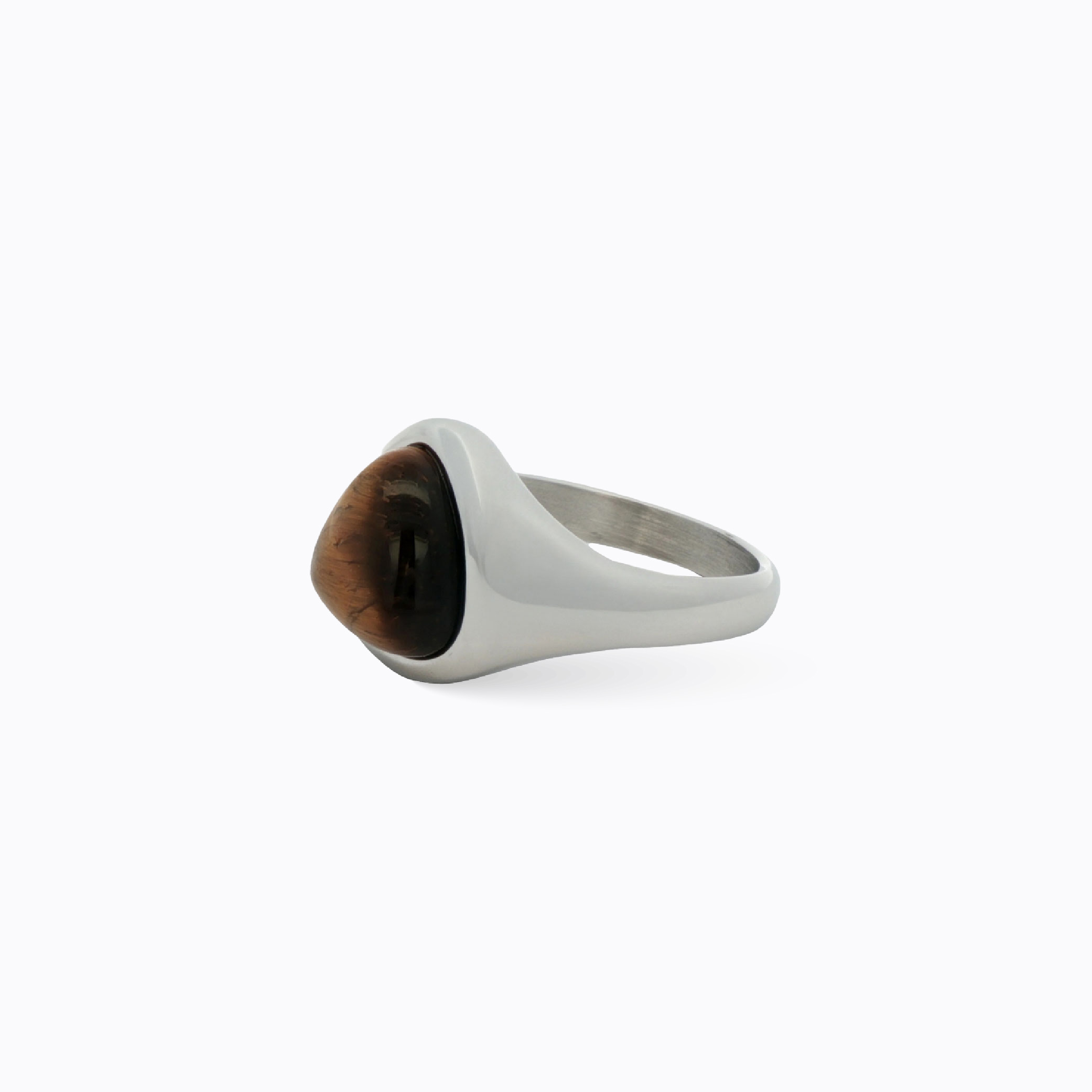 - Stylish stainless steel ring featuring a striking Tiger’s Eye stone for a distinctive accessory