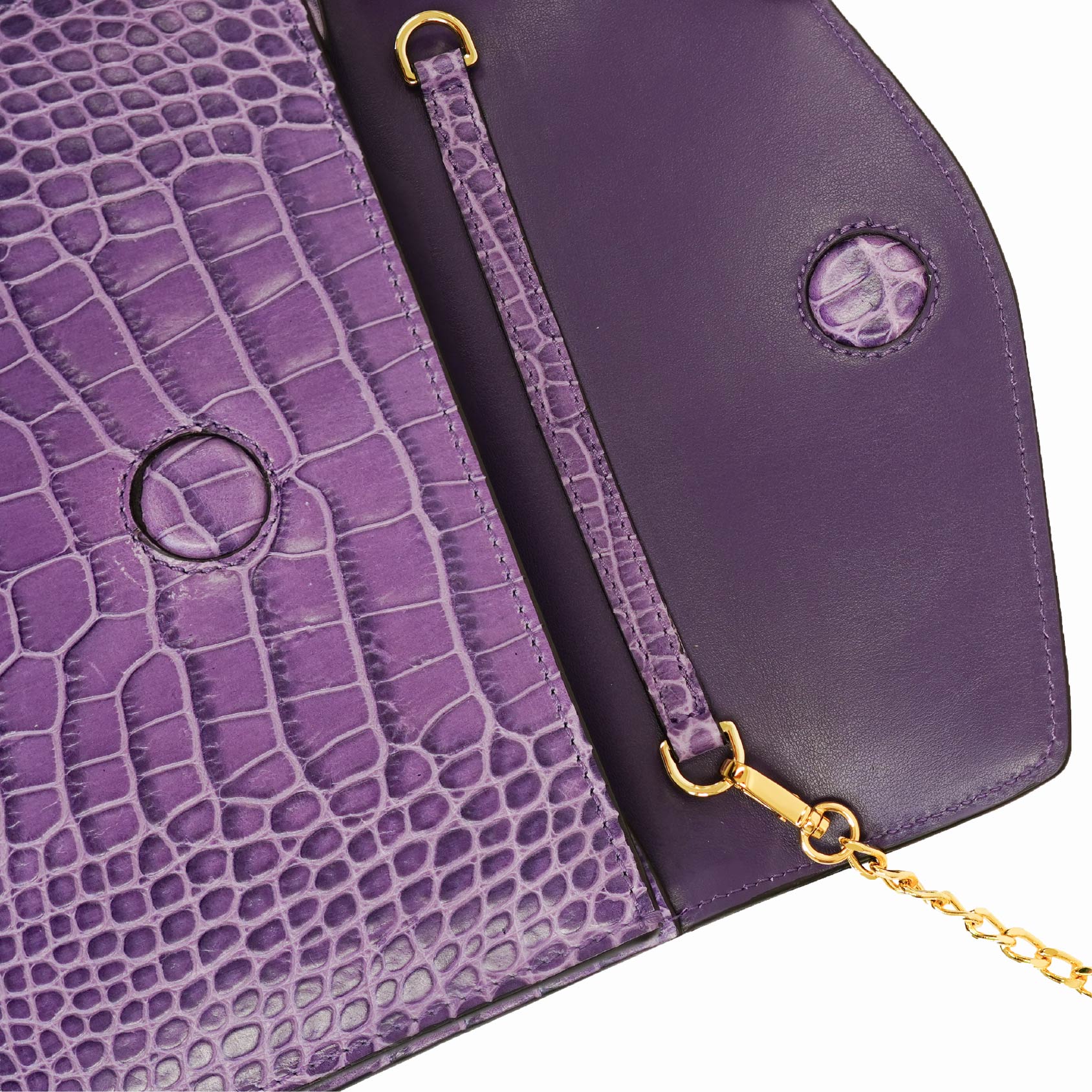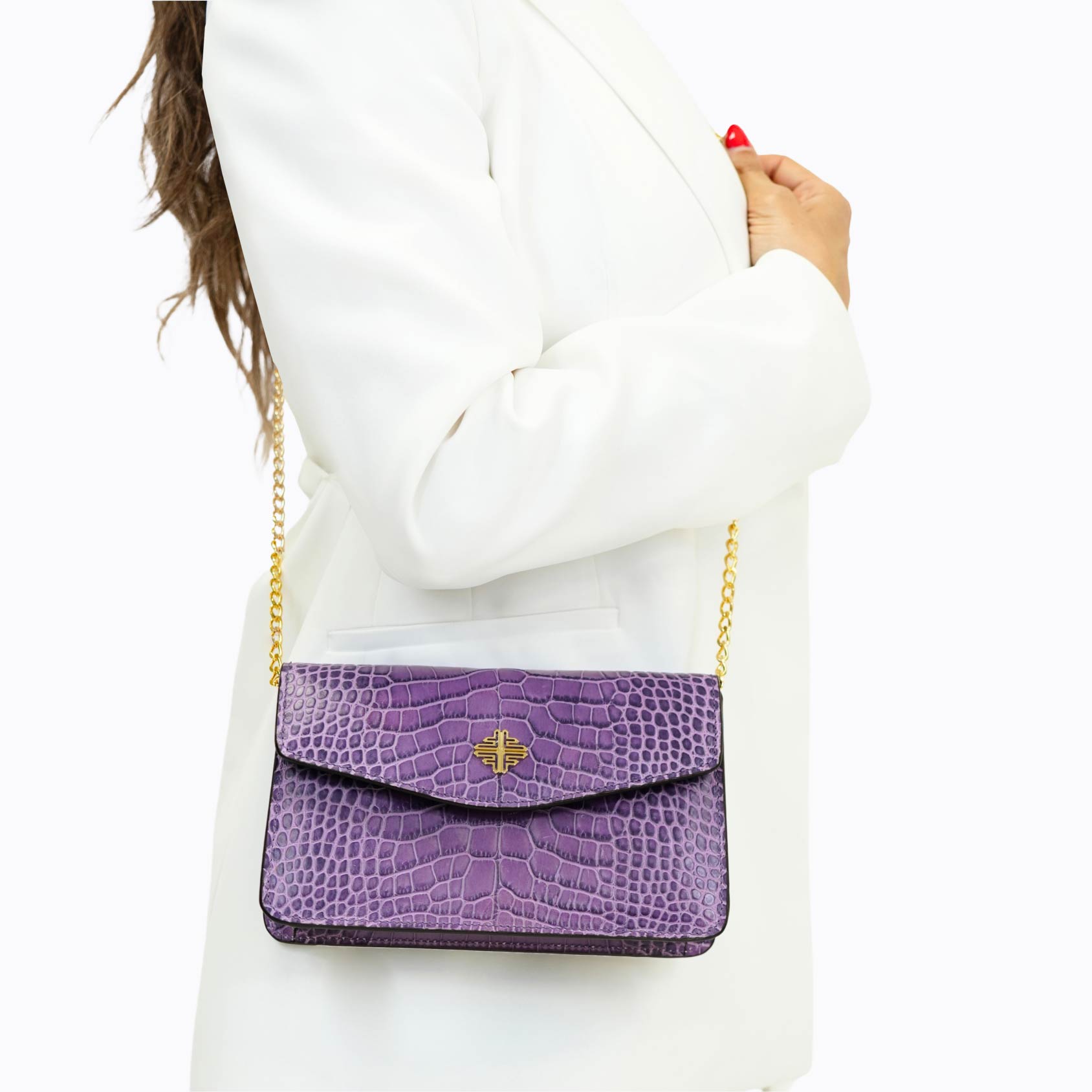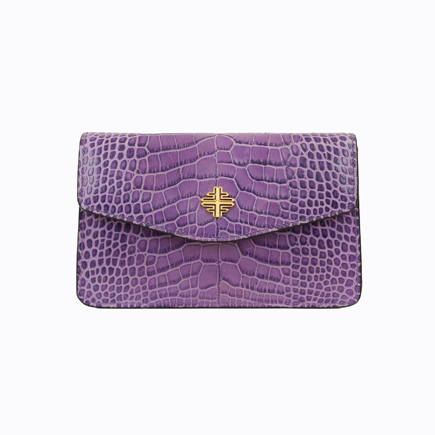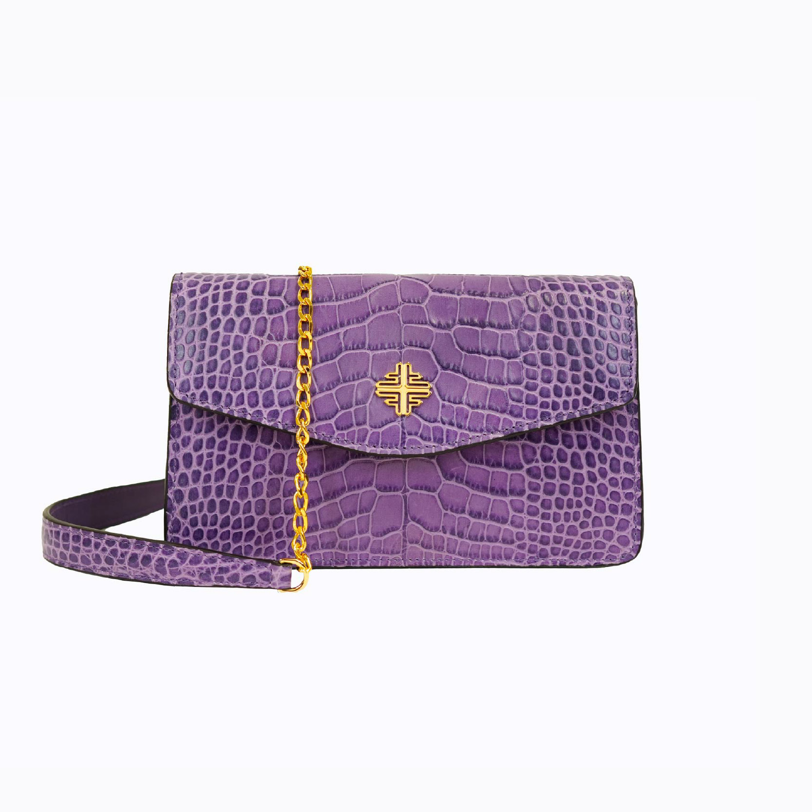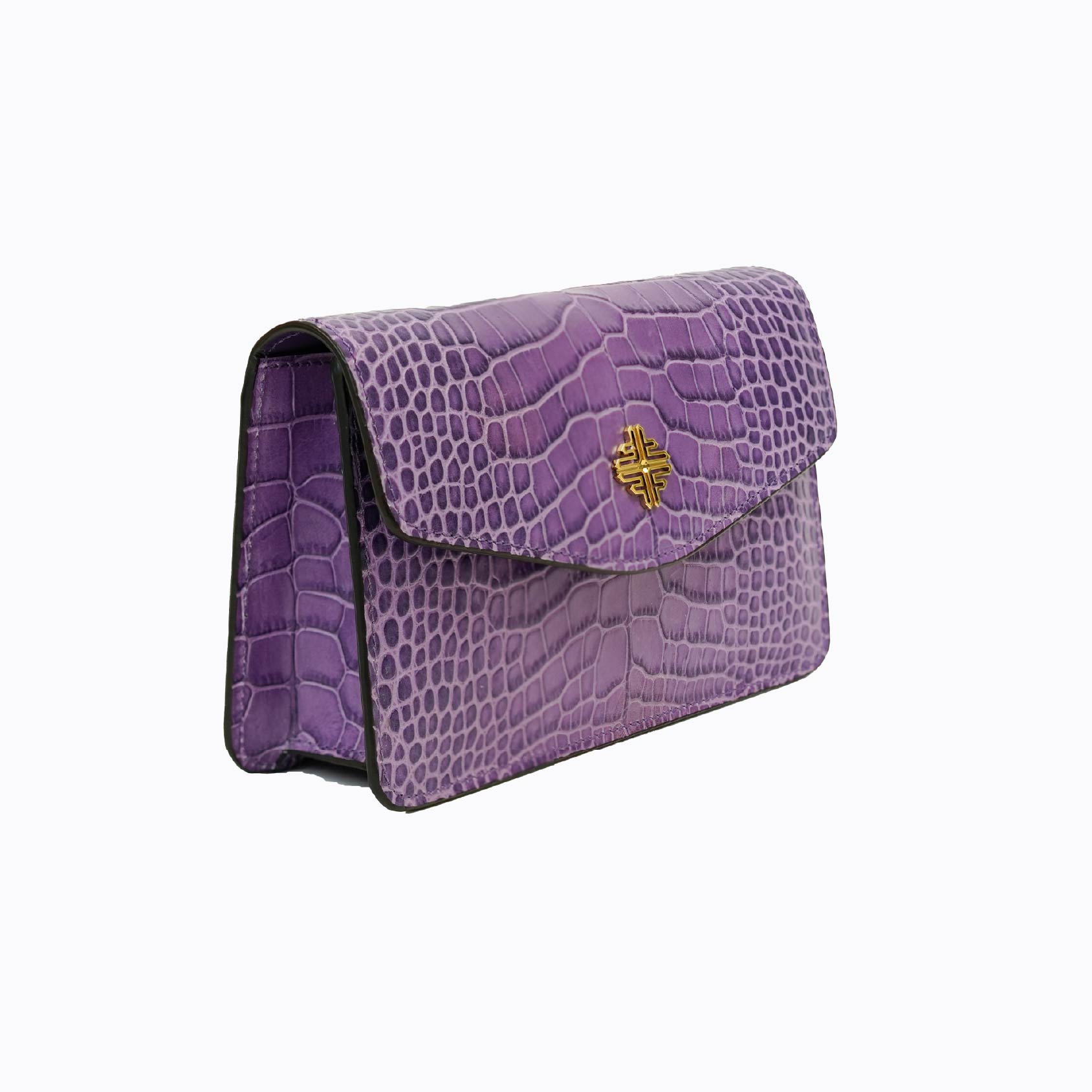 Make a bold, luxurious statement with the FERI Croc-Embossed Leather Purse, a compact yet striking accessory that blends timeless design with exotic sophistication. Crafted in a Purple colour, this structured purse features a high-shine crocodile-embossed finish and a sleek flap closure adorned with the signature 4F logo in gold-tone hardware.