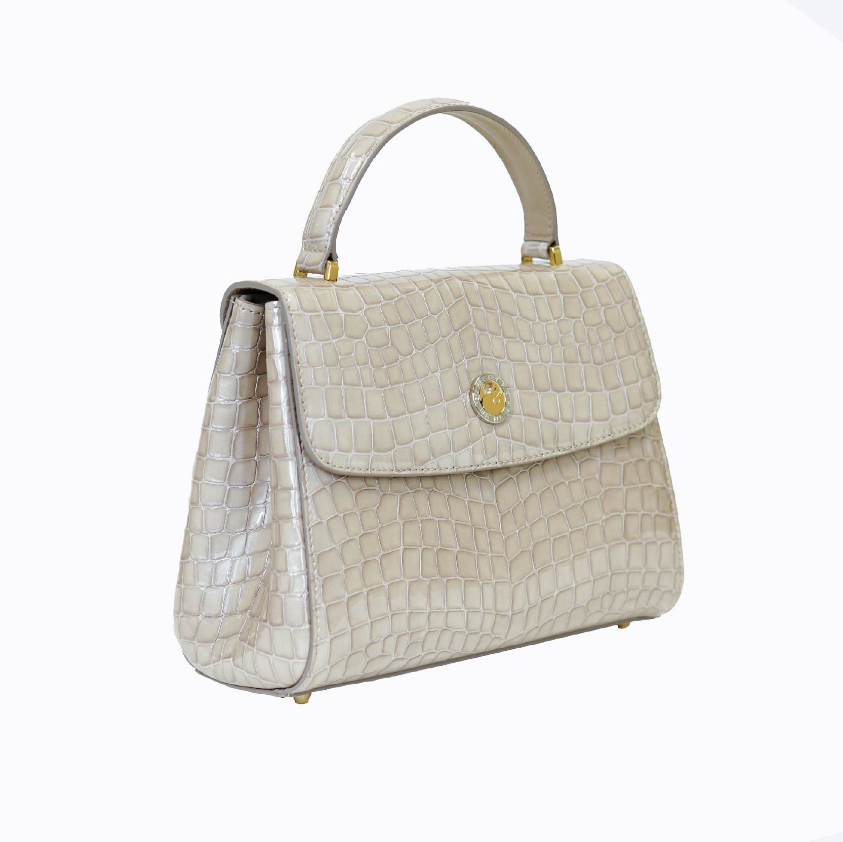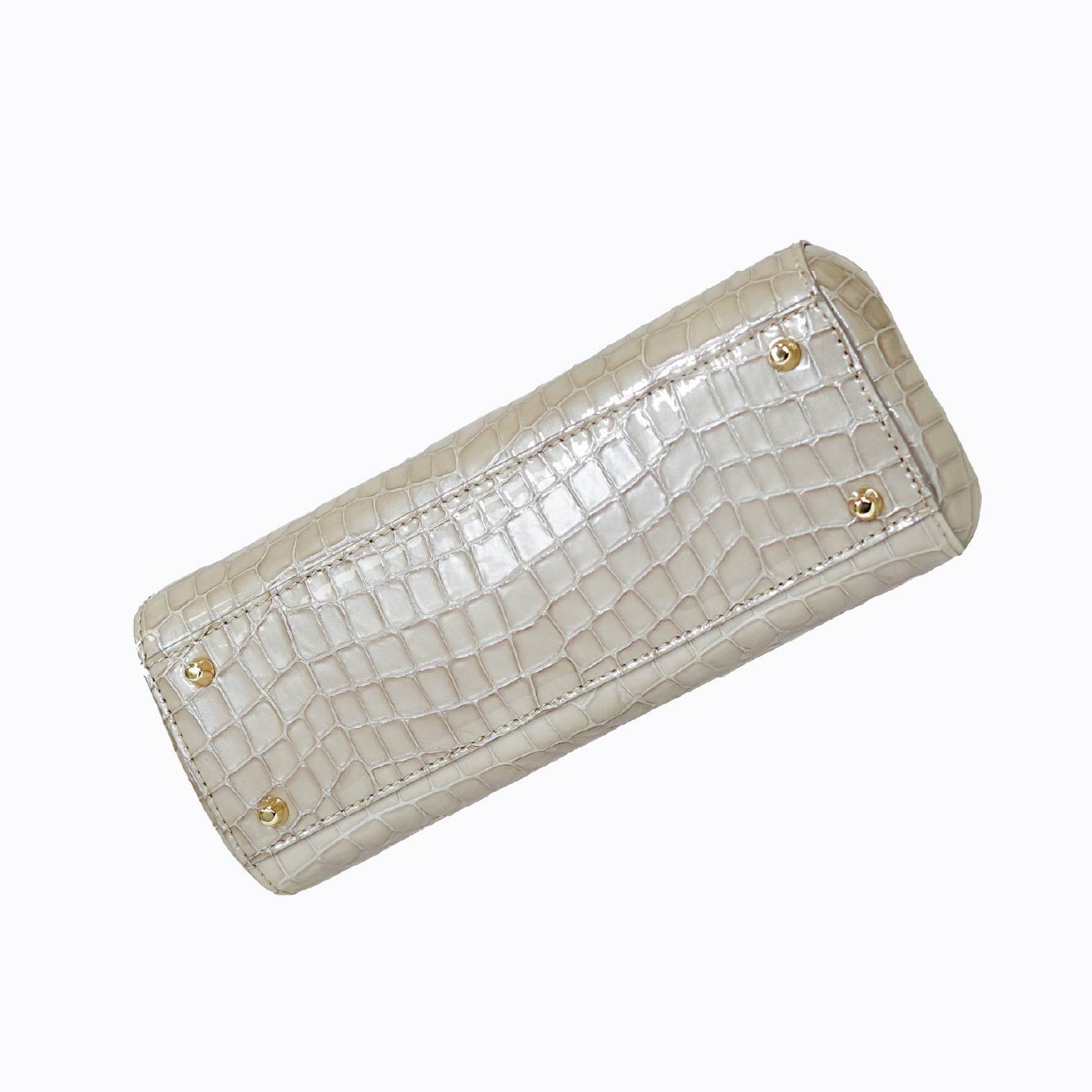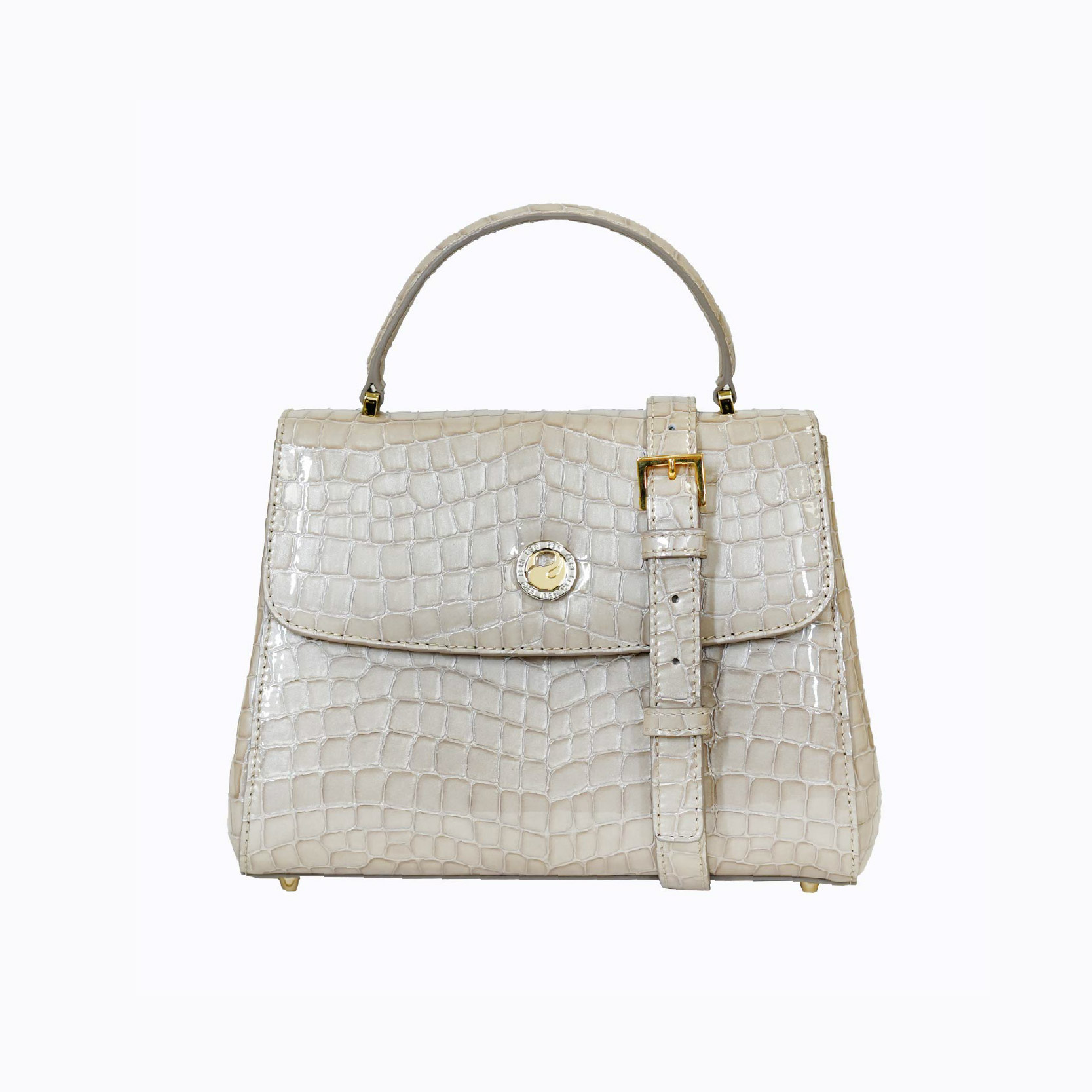 Step into timeless elegance with the FERI Beige Medium Handbag, a perfect fusion of classic sophistication and modern luxury. Crafted from high-shine patent leather in a refined beige tone, this handbag features an all-over croc-embossed texture that adds richness and depth. The structured silhouette is elevated by a sleek top handle and secured with a signature gold-and-silver round FERI logo clasp. Roomy yet refined, this bag is ideal for day-to-night transitions.