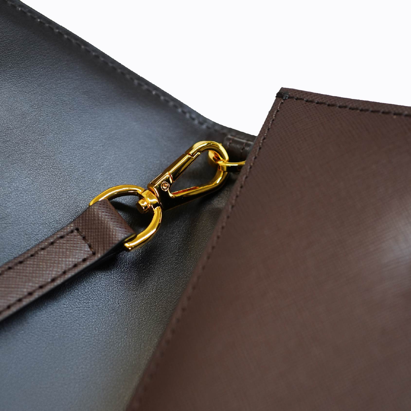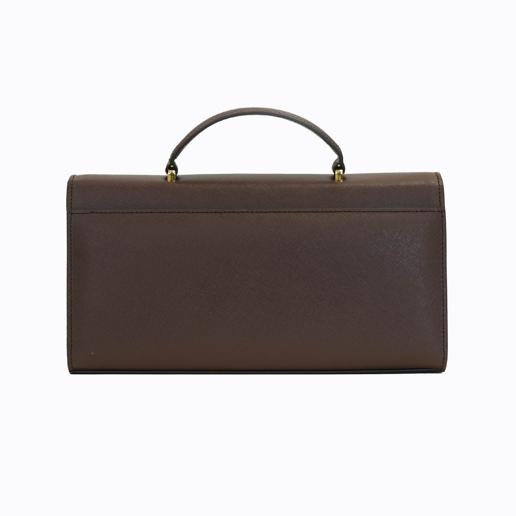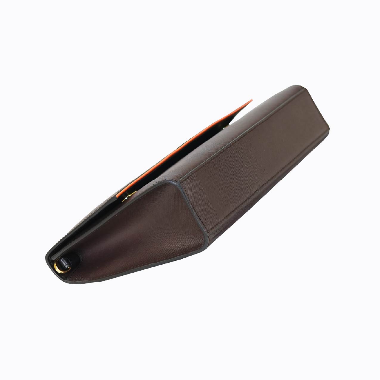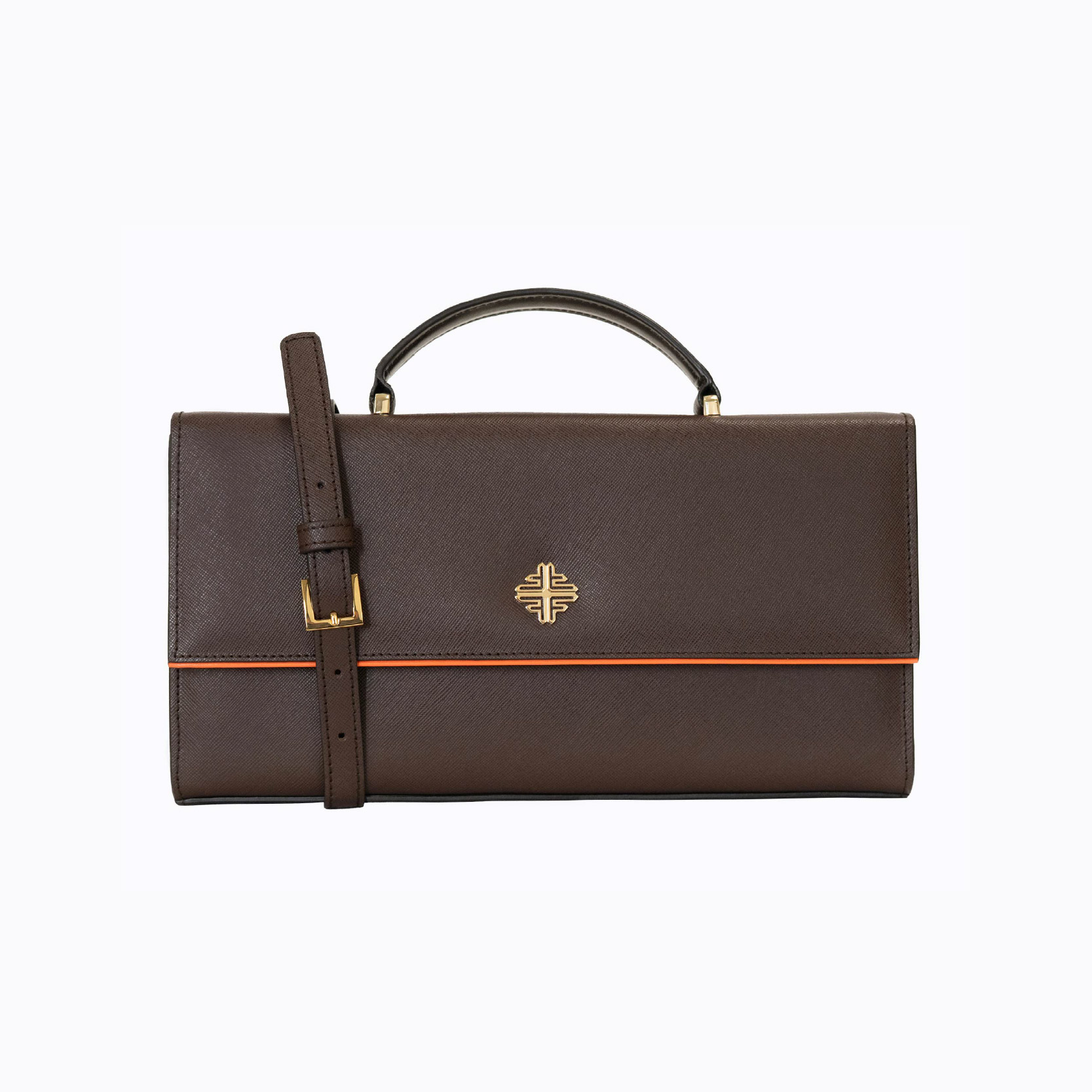 This elegant handbag features a sophisticated cognac exterior, crafted from high-quality textured leather that exudes luxury. The sleek silhouette is accented with an orange trim, adding a pop of color and a modern twist to its classic design. A stylish top handle allows for comfortable carrying, while the magnetic flap closure ensures security and easy access to your essentials. The 4F hardware logo on the front adds a touch of refinement. Perfect for both professional settings and evening outings, this bag is a versatile accessory that enhances any wardrobe.