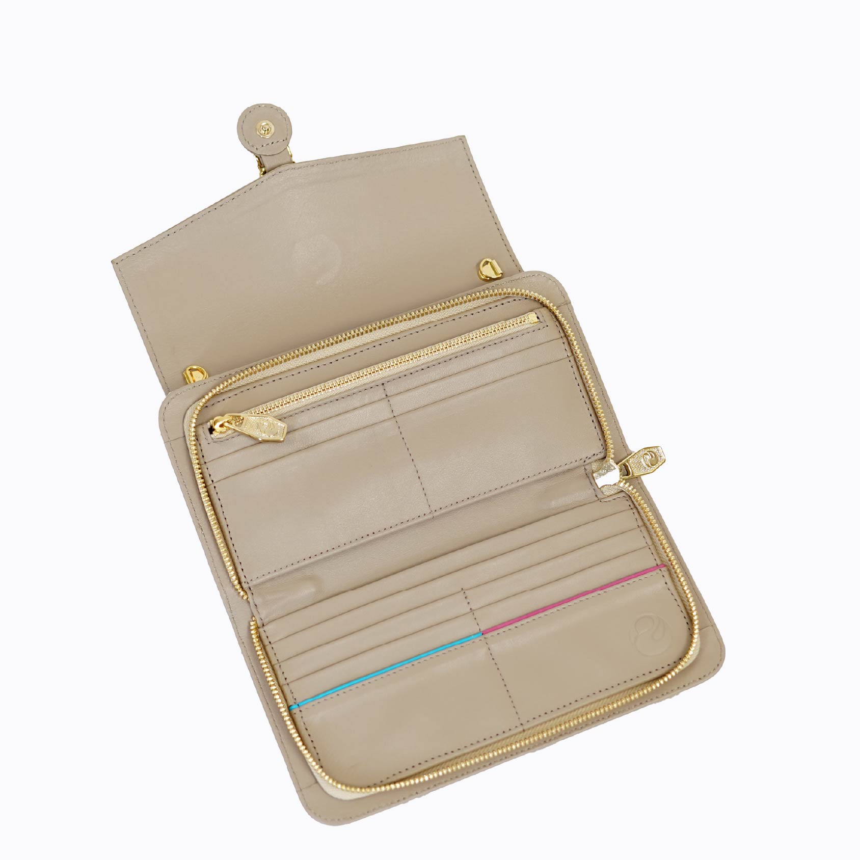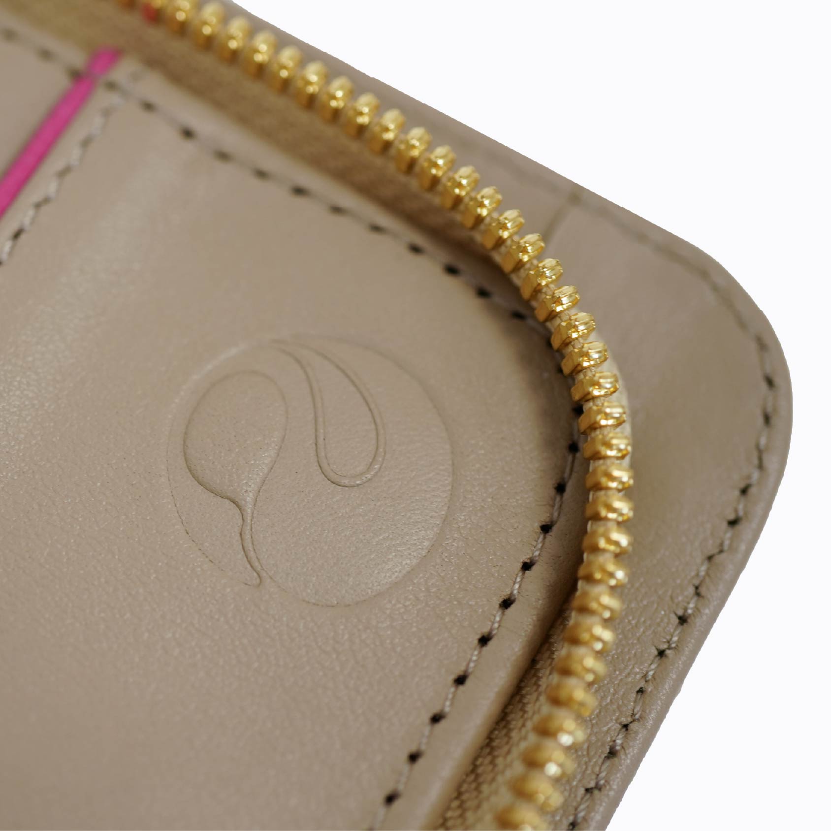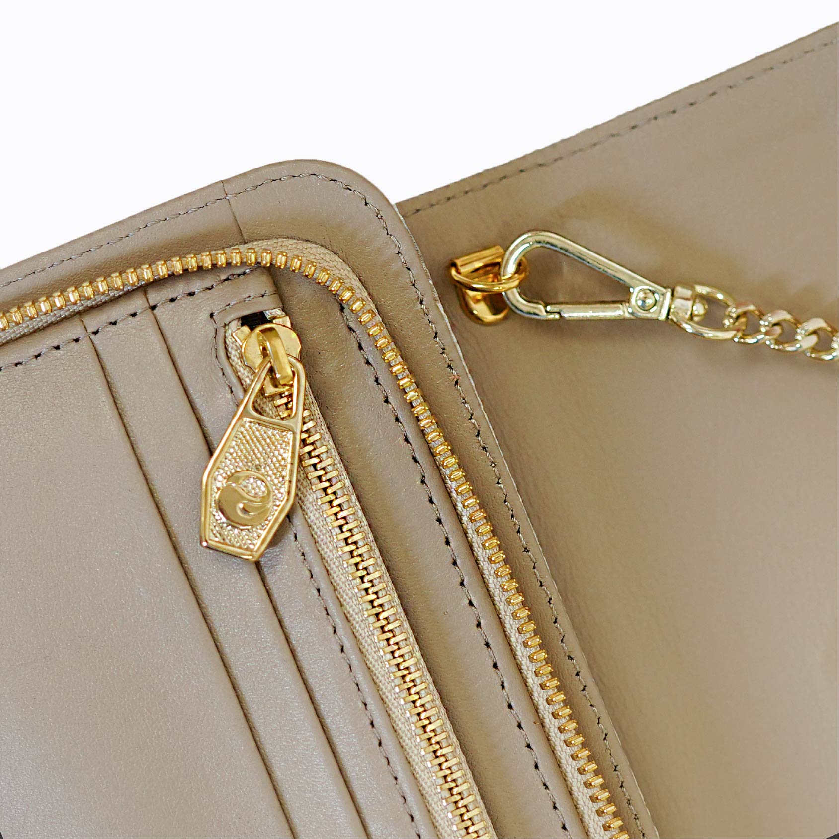 - Gold-tone hardware including a sleek zipper pull for added luxury