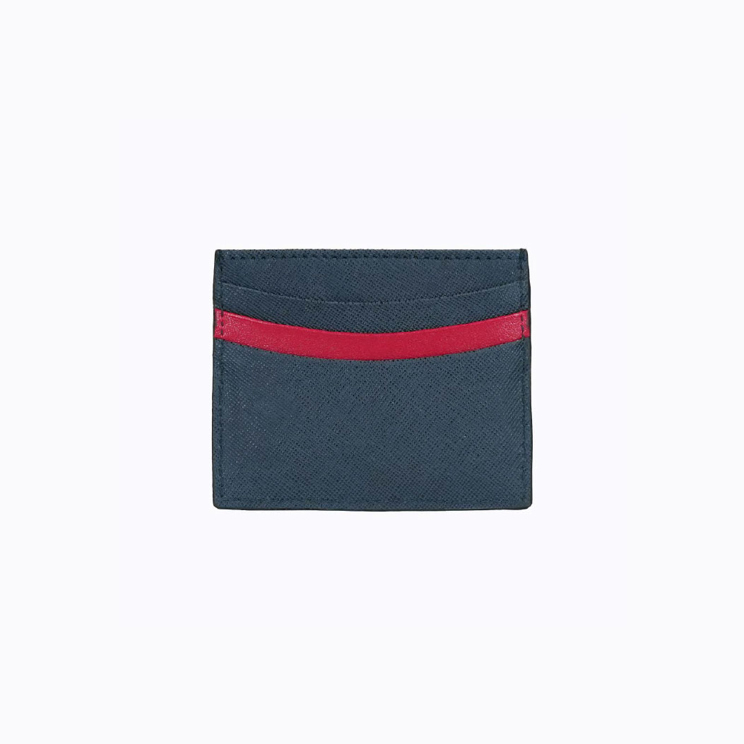 This sleek cardholder is expertly crafted from premium textured leather, showcasing a sophisticated navy finish. Designed for both style and functionality, it features multiple card slots, allowing for easy organization of your essentials. A vibrant red accent stripe adds a modern and eye-catching touch, enhancing its overall appeal. The compact size makes it perfect for slipping into pockets or small bags, Italy produces exceptional craftsmanship and quality. Ideal for those who appreciate minimalist design without sacrificing practicality, this cardholder is a stylish addition to any accessory collection.