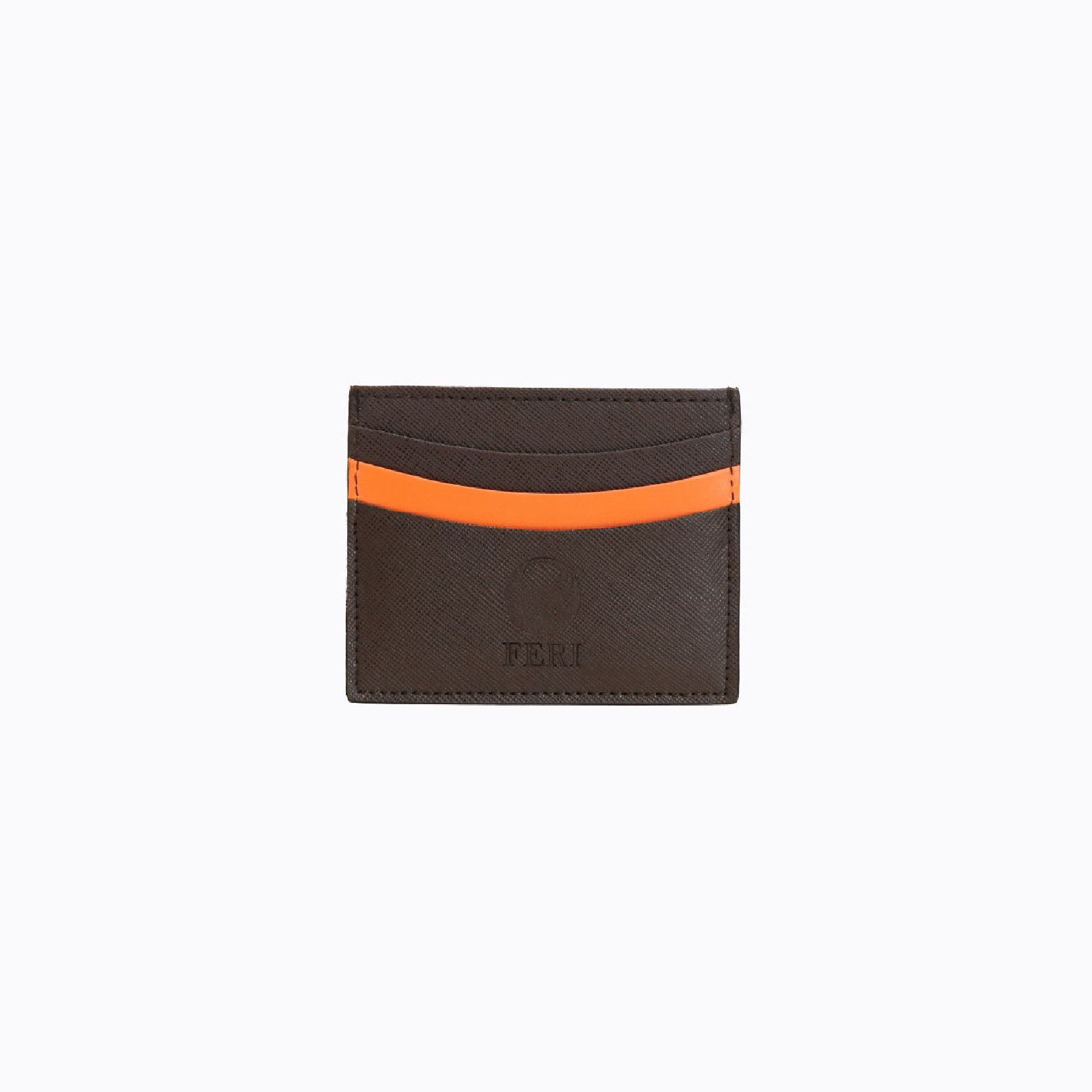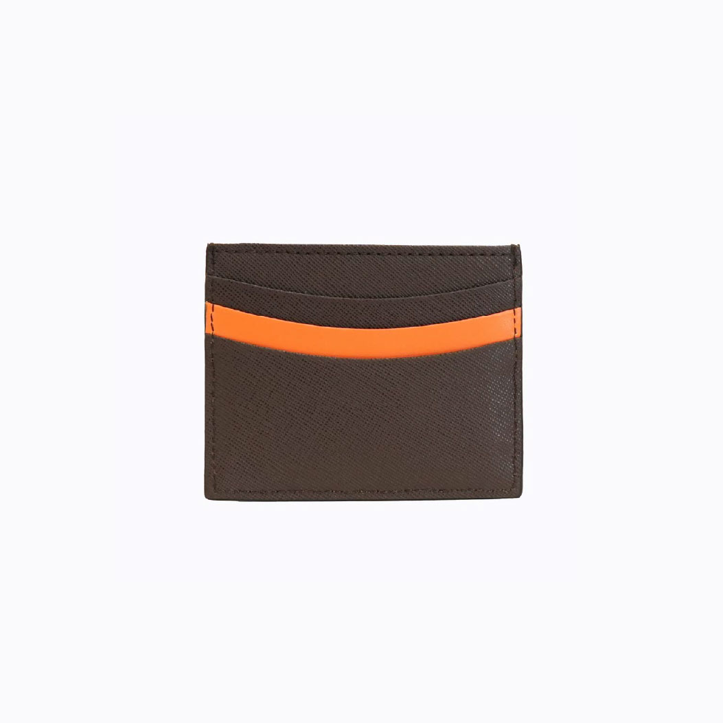 This sleek cardholder is expertly crafted from premium textured leather, showcasing a sophisticated cognac finish. Designed for both style and functionality, it features multiple card slots, allowing for easy organization of your essentials. A vibrant orange accent stripe adds a modern and eye-catching touch, enhancing its overall appeal. The compact size makes it perfect for slipping into pockets or small bags, Italy produces exceptional craftsmanship and quality. Ideal for those who appreciate minimalist design without sacrificing practicality, this cardholder is a stylish addition to any accessory collection.