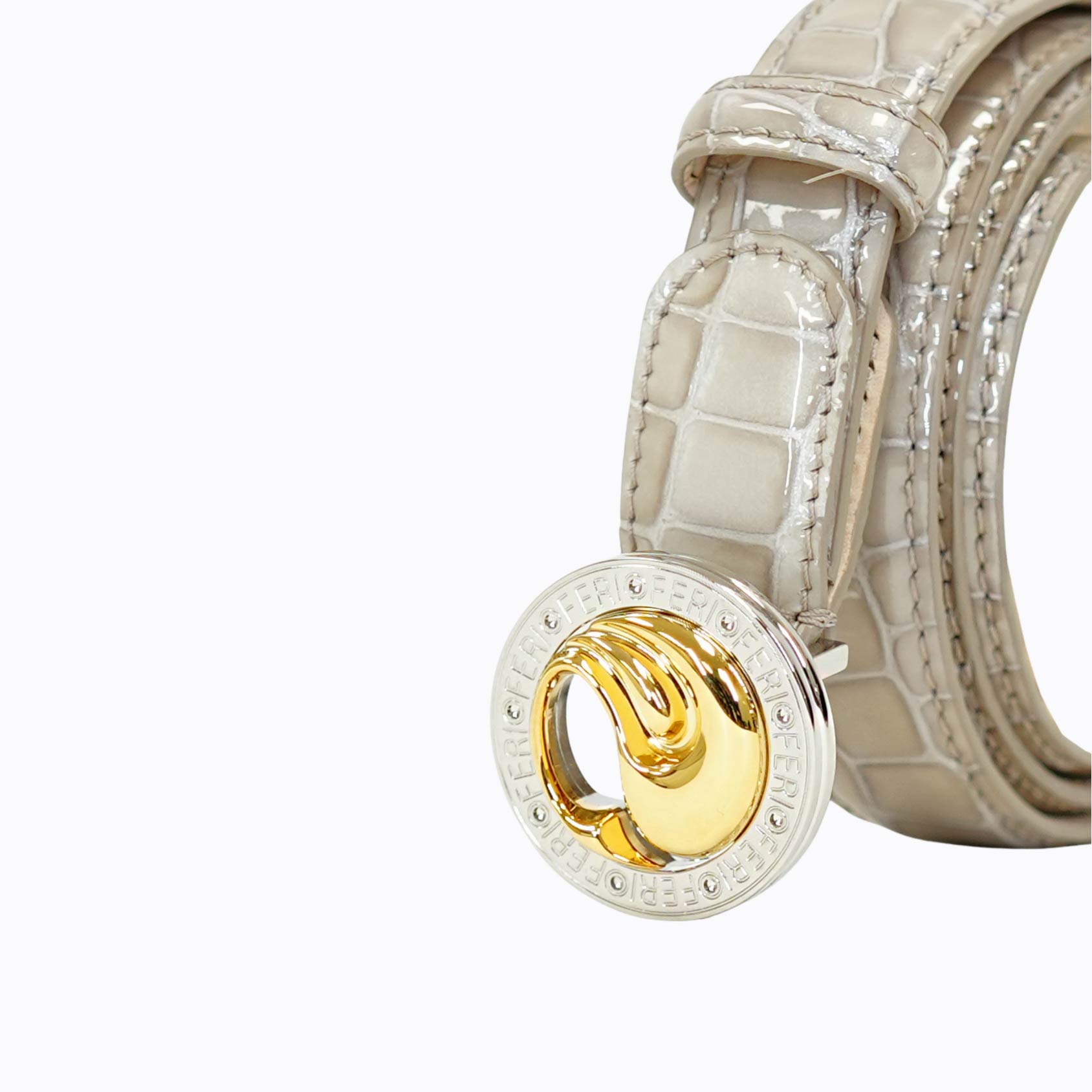 Refined elegance meets signature luxury in the FERI croc-embossed leather belt. Designed for fashion-forward individuals offering a rich and sophisticated look.